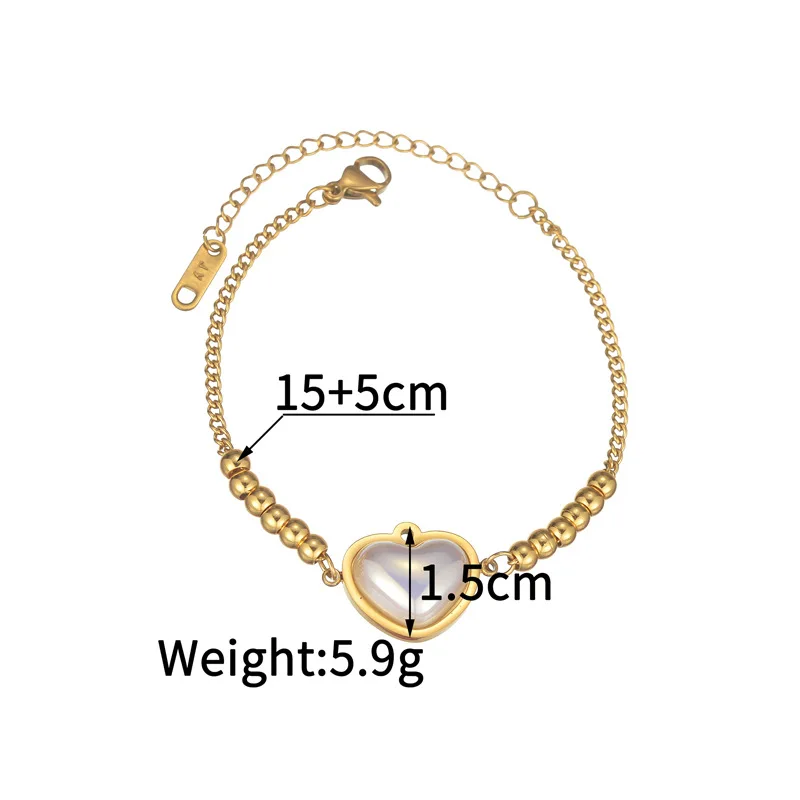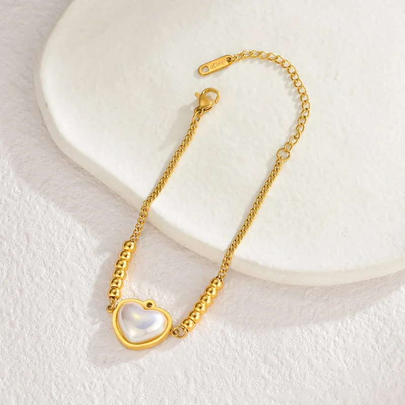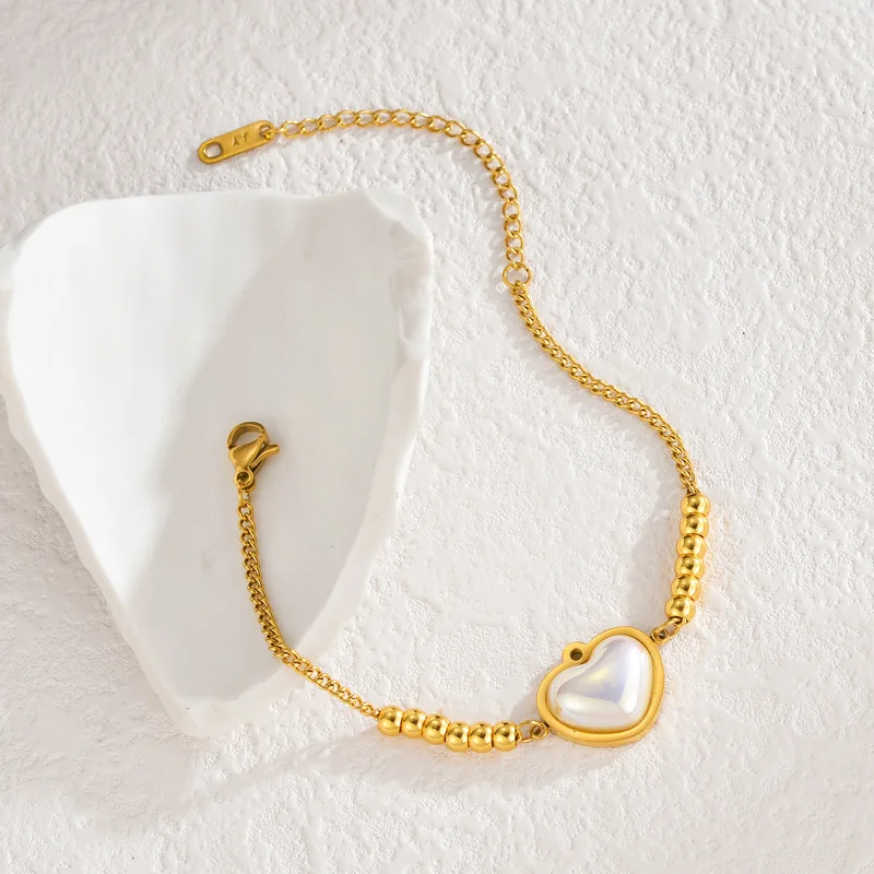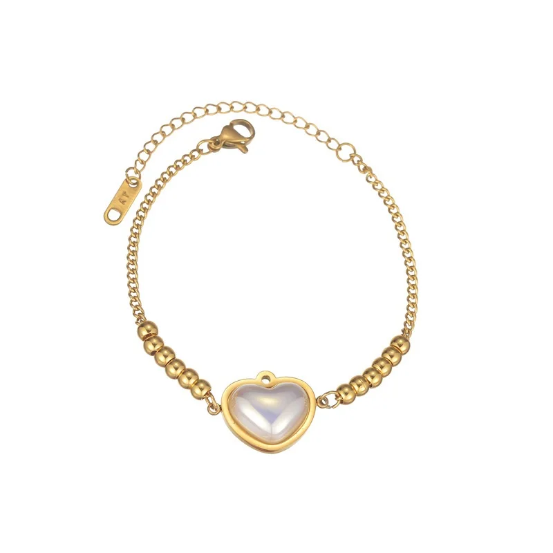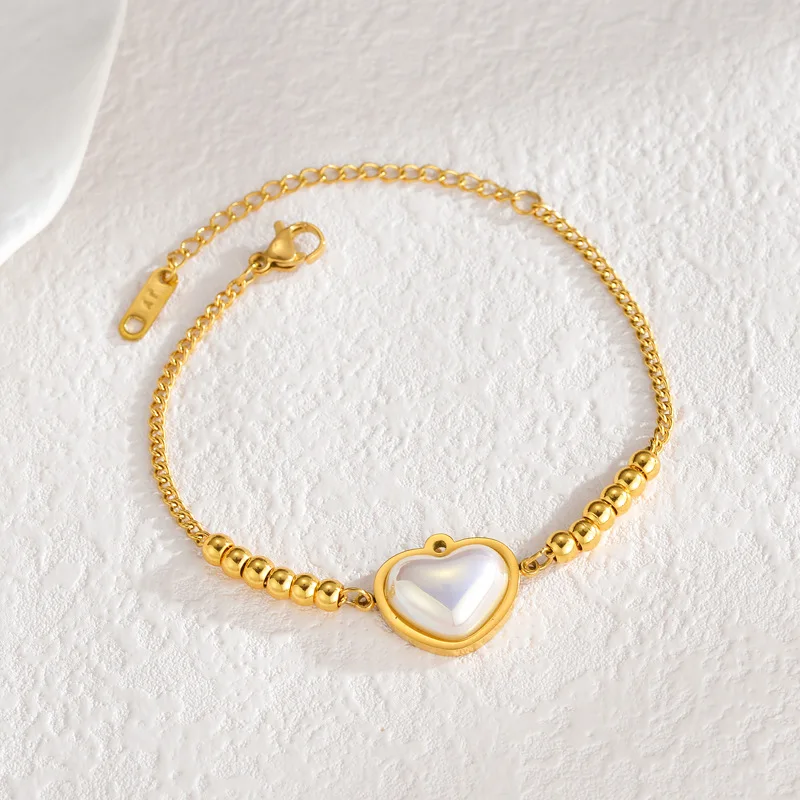 New Fashion Pearl Heart Charm Chain Bracelet Fine 18K Gold Plated Stainless Steel Bracelet for Women
