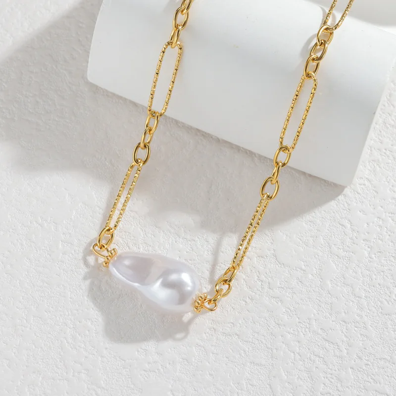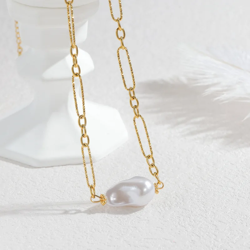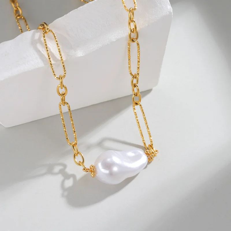 Minimalist Pearl Choker Necklace Stainless Steel 18K Gold Plated Ins Cold Style Unique Design Layering Chain for Women