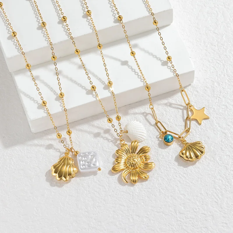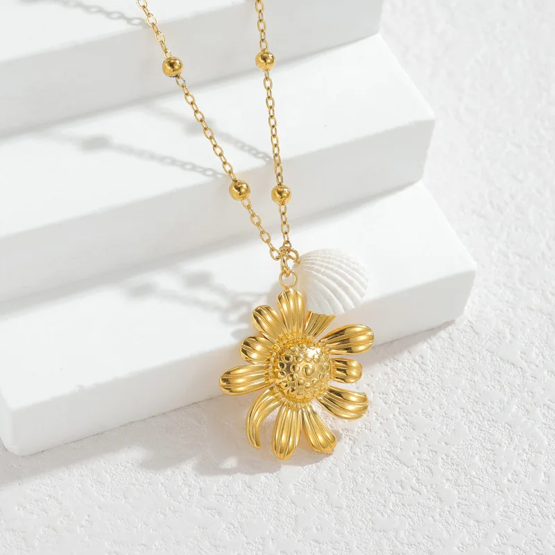 Ins Fashion Sunflower Pendant Necklace Stainless Steel Gold Plated Layering Choker Unique Design Women Sweater Chain