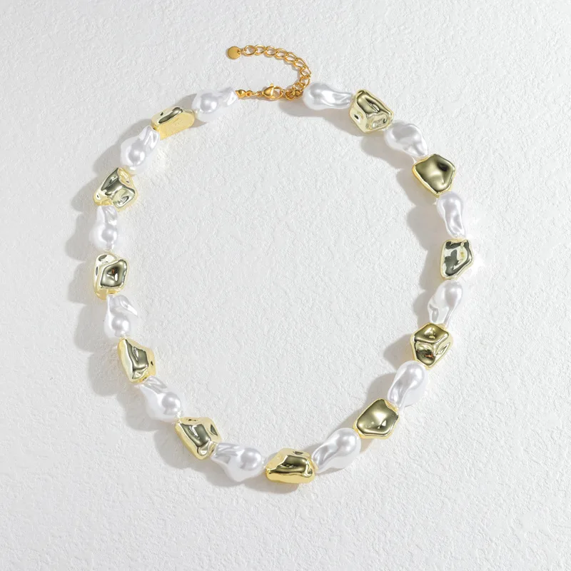 Ins Style Multicolor Beaded Necklace Irregular Pendant Layering Chain Light Luxury Minimalist Jewelry for Women