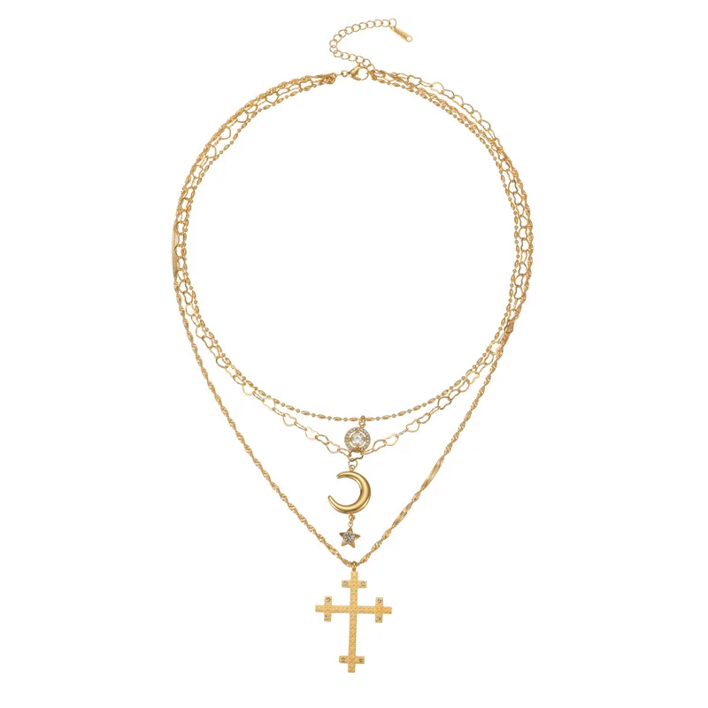 Trendy Layered Cross Necklace Stainless Steel Double Chain Choker Light Luxury Minimalist Jewelry for Women Europe Style