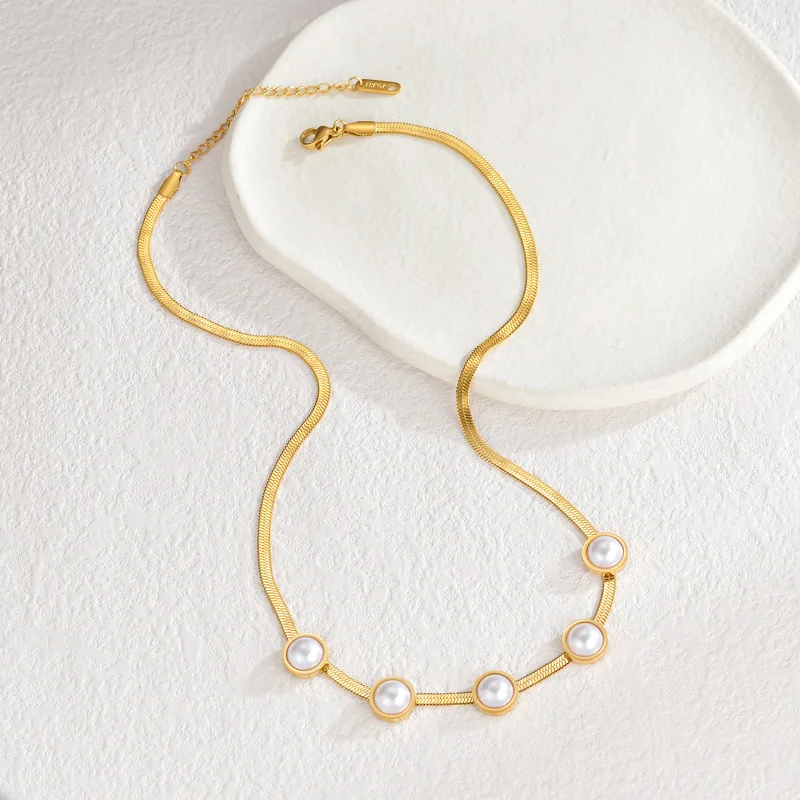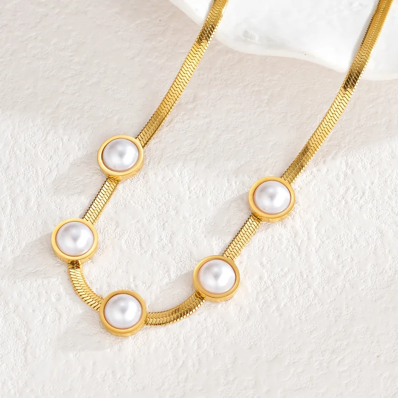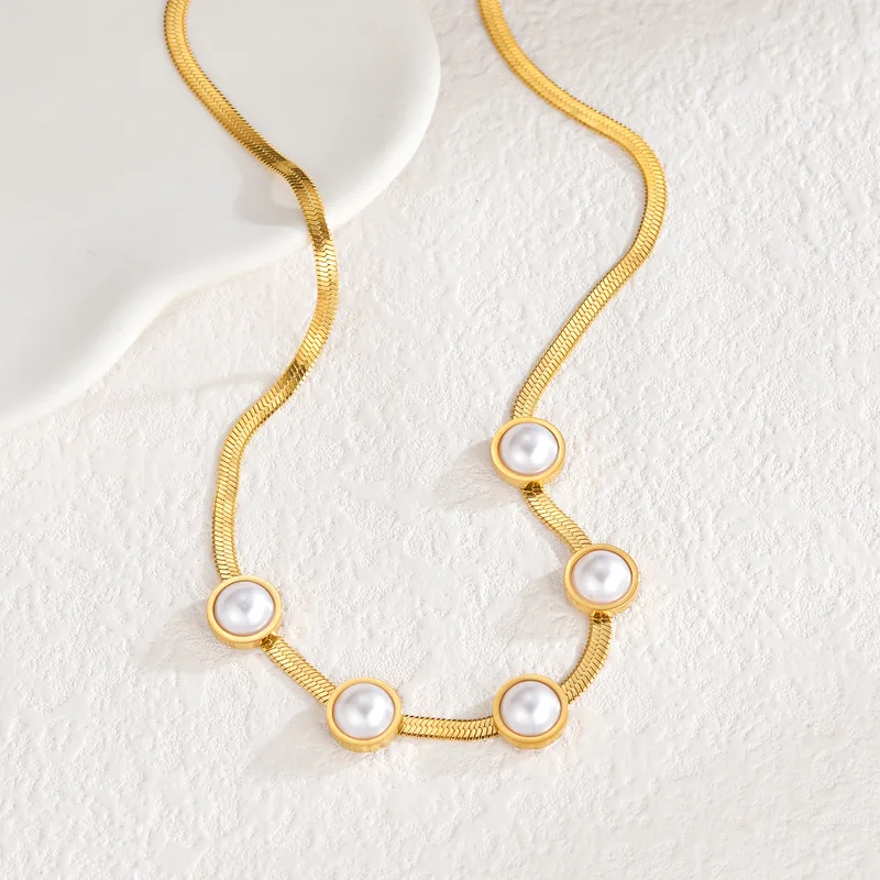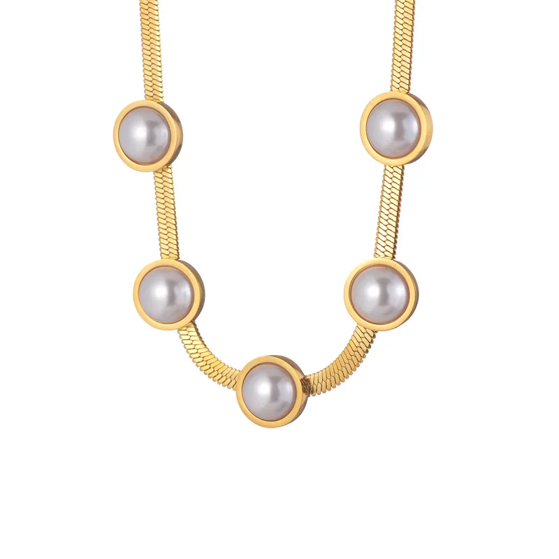 Vintage Chunky Link Imitation Pearl 18k Gold Plated Necklace Stainless Steel Pearl Pendant Necklace for Women