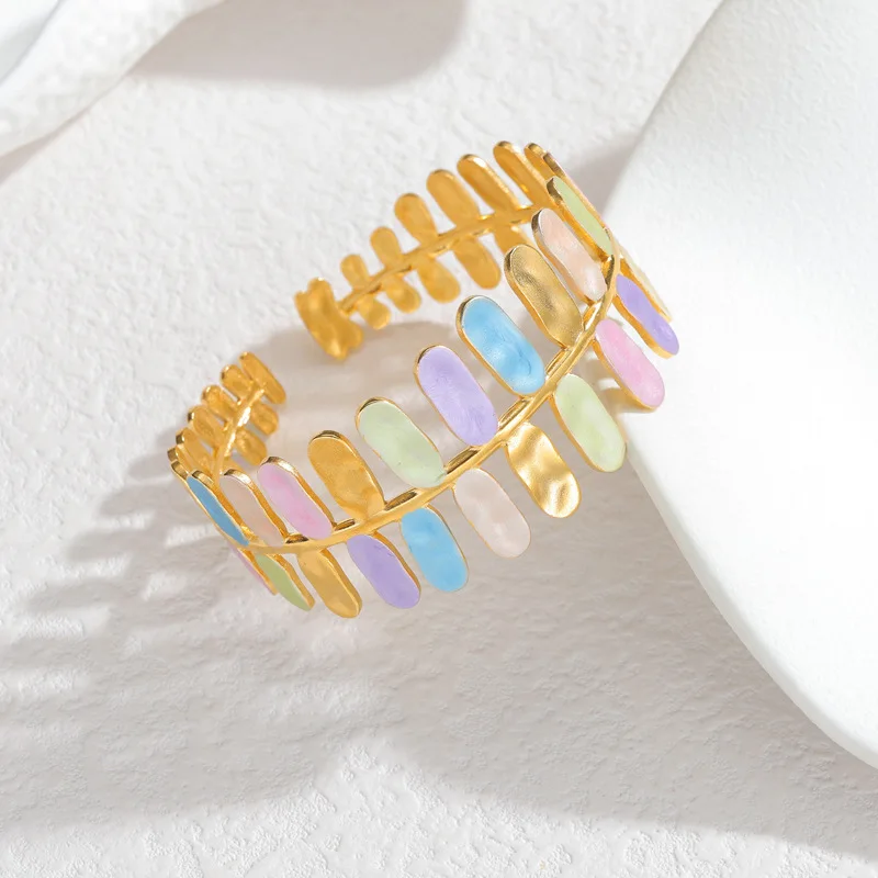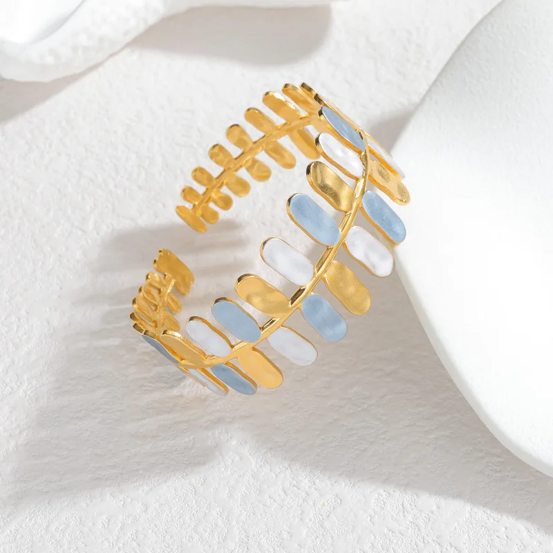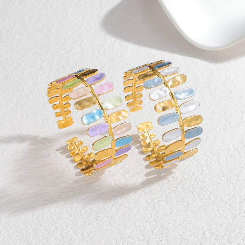 C-Shaped Bangle Wholesale Ins Style Retro Minimalist Oval Open Cuff Bracelet for Women Stainless Steel 18K Gold Plated