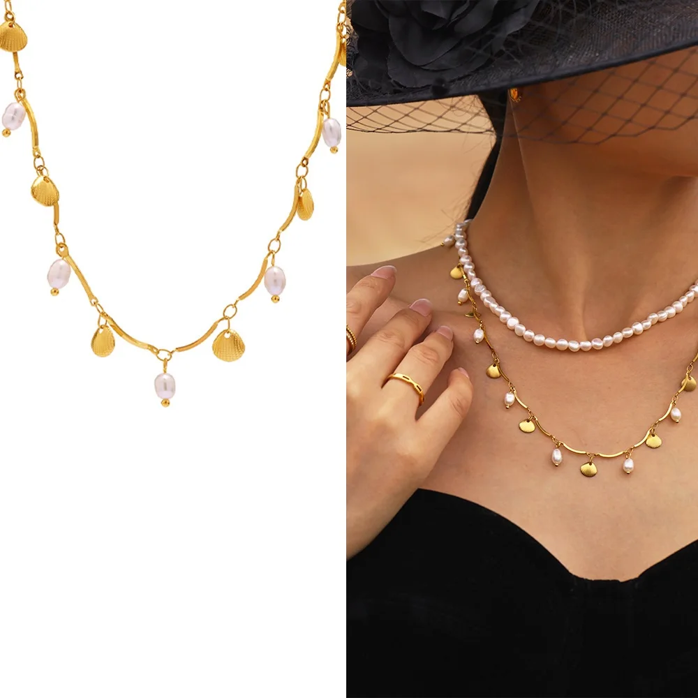 New Design Shell Shape Pendant Necklace Stainless Steel Fresh Water Pearl Pendant Necklace for Women