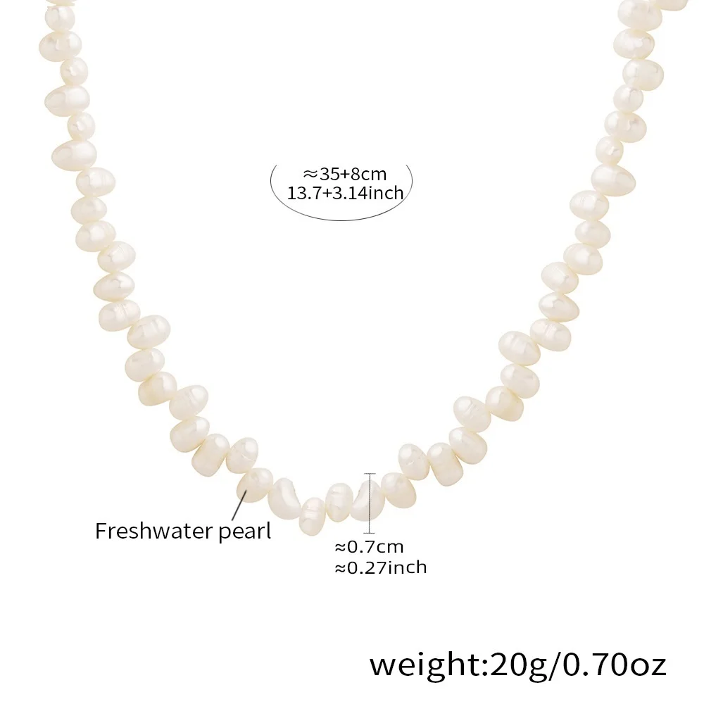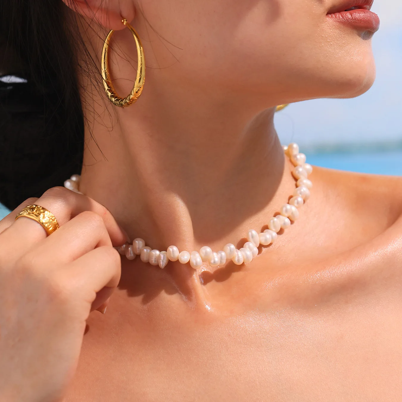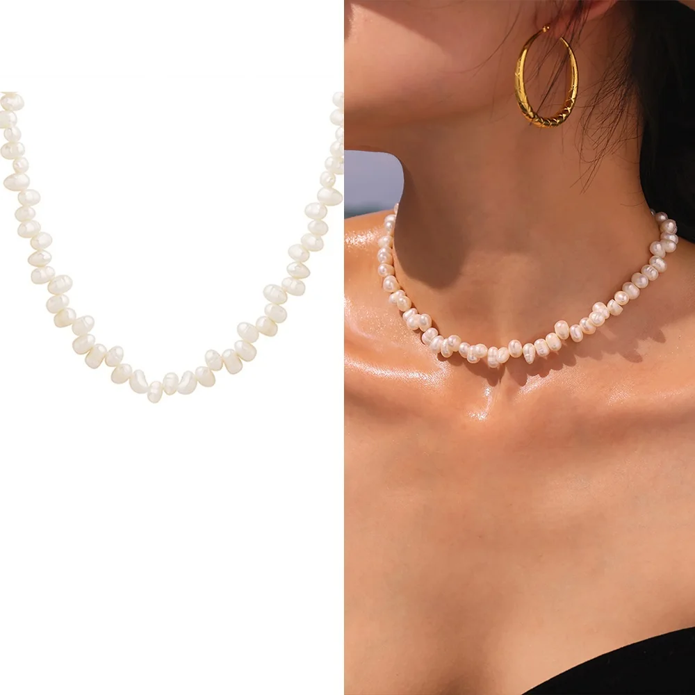 Natural Irregular White Cultured Elegant Women Pearl Bead Necklace Waterproof Stainless Steel 18k Gold Plated Choker Necklace