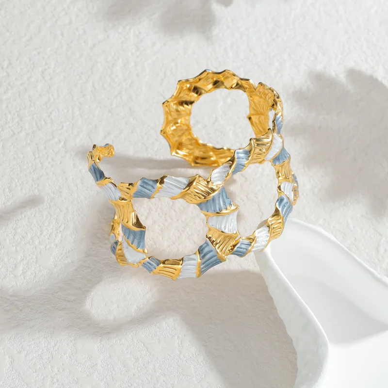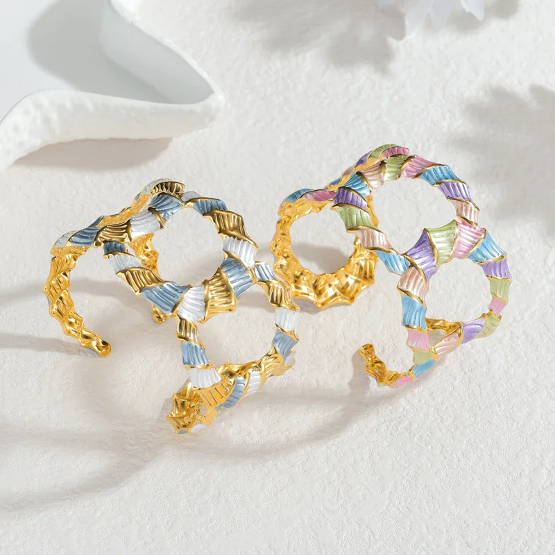 Wholesale Hollow Out Cuff Bracelet Stainless Steel Open Bangle Ins Style Light Luxury Irregular Jewelry for Women
