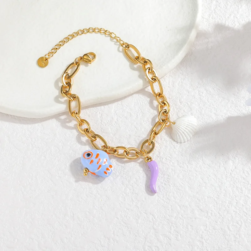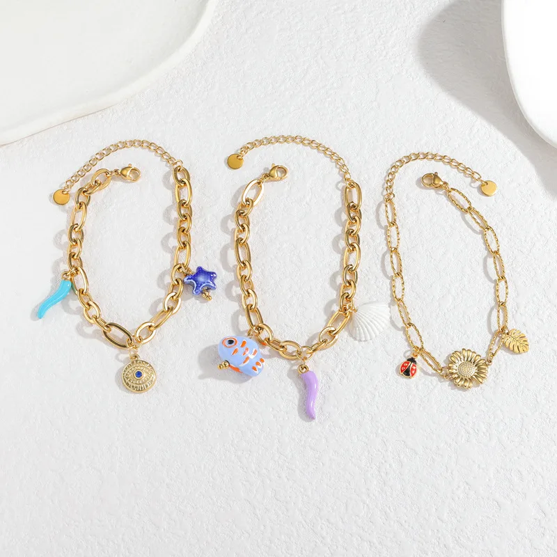 Wholesale Beaded Bracelet 18K Gold Plated Stainless Steel, Light Luxury Ins Style Adjustable Chain for Women