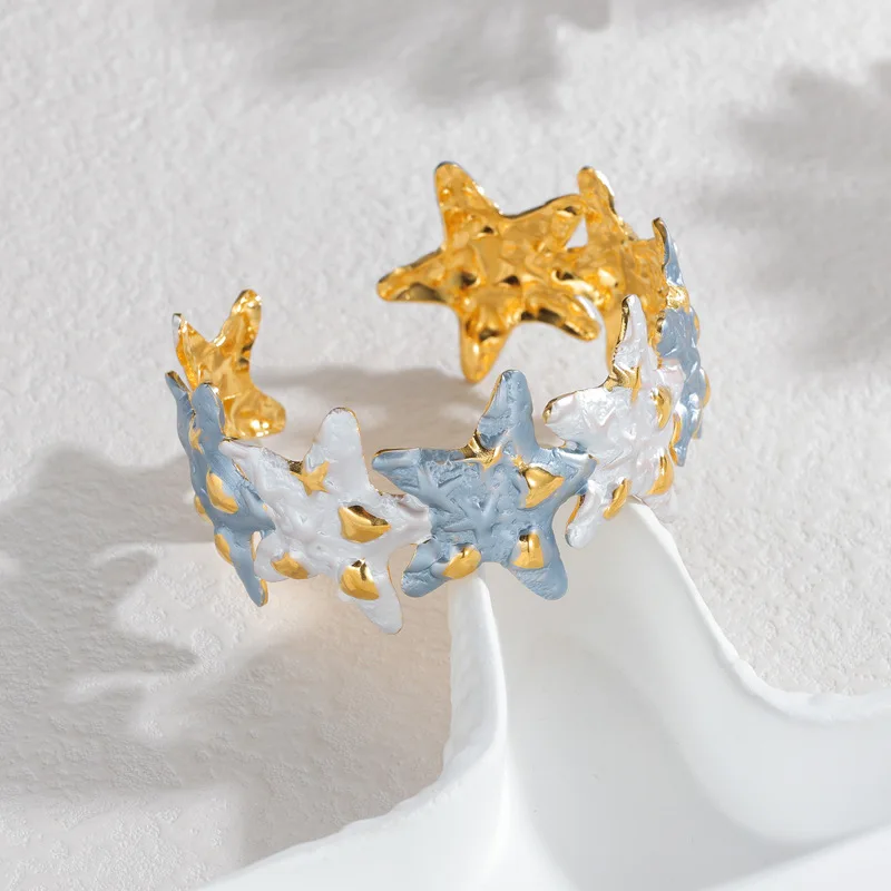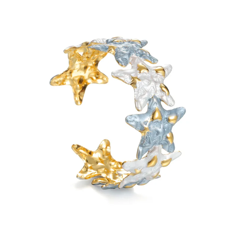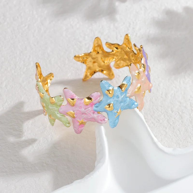 Light Luxury Office Lady Bracelet 18K Gold Plated Star Cuff Bangle Wholesale Ins Style Enamel Fashion Jewelry for Women