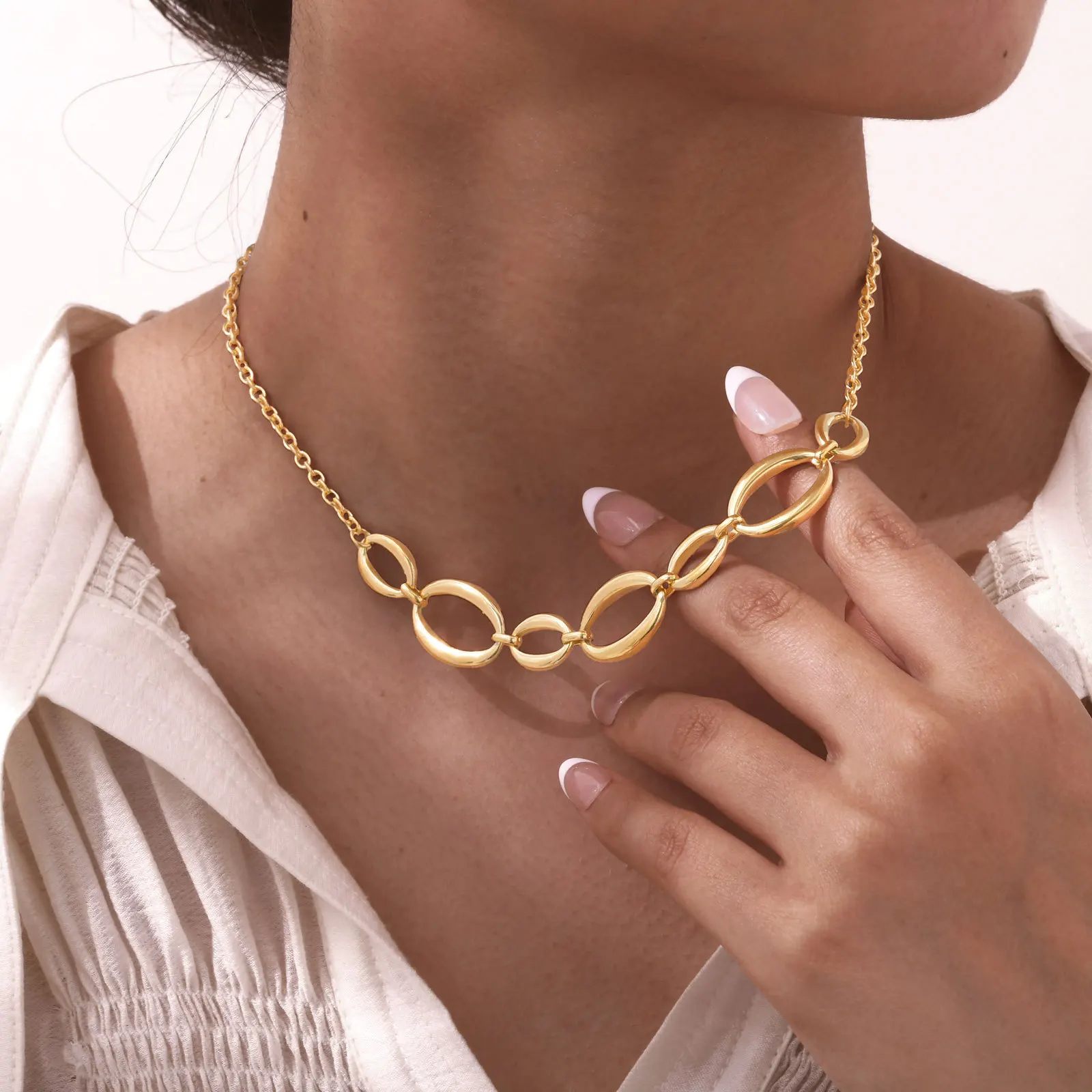 New Fashion 18k Gold Plated Oval Circle Geometric Necklace Waterproof Stainless Steel Chain Necklace for Women Jewelry