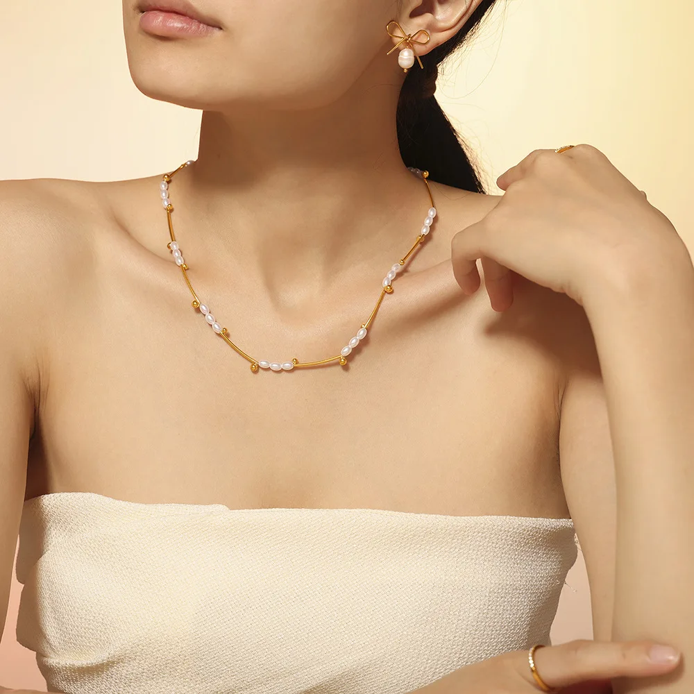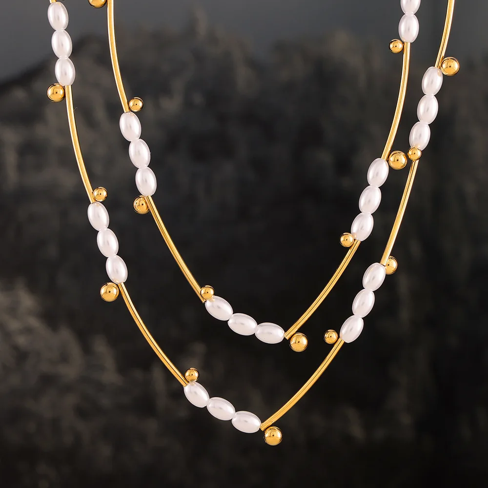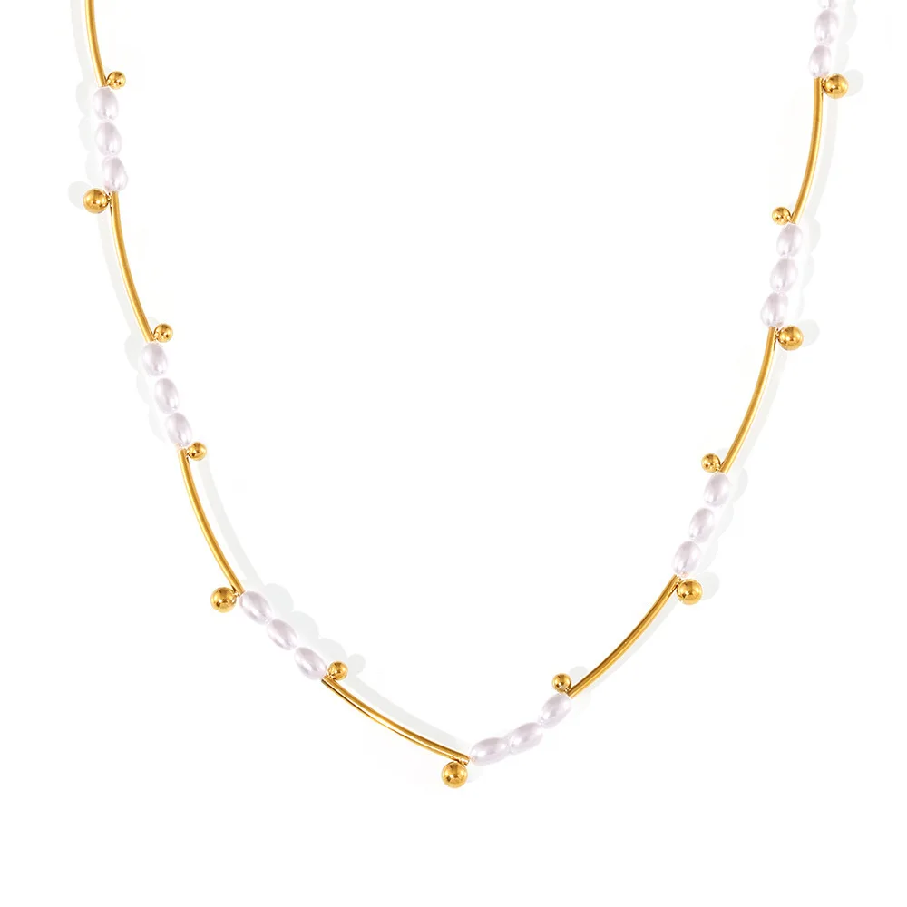 New Fashion Imitation Pearl Collarbone Necklace Waterproof 18k Gold Plated Beaded Necklaces for Women