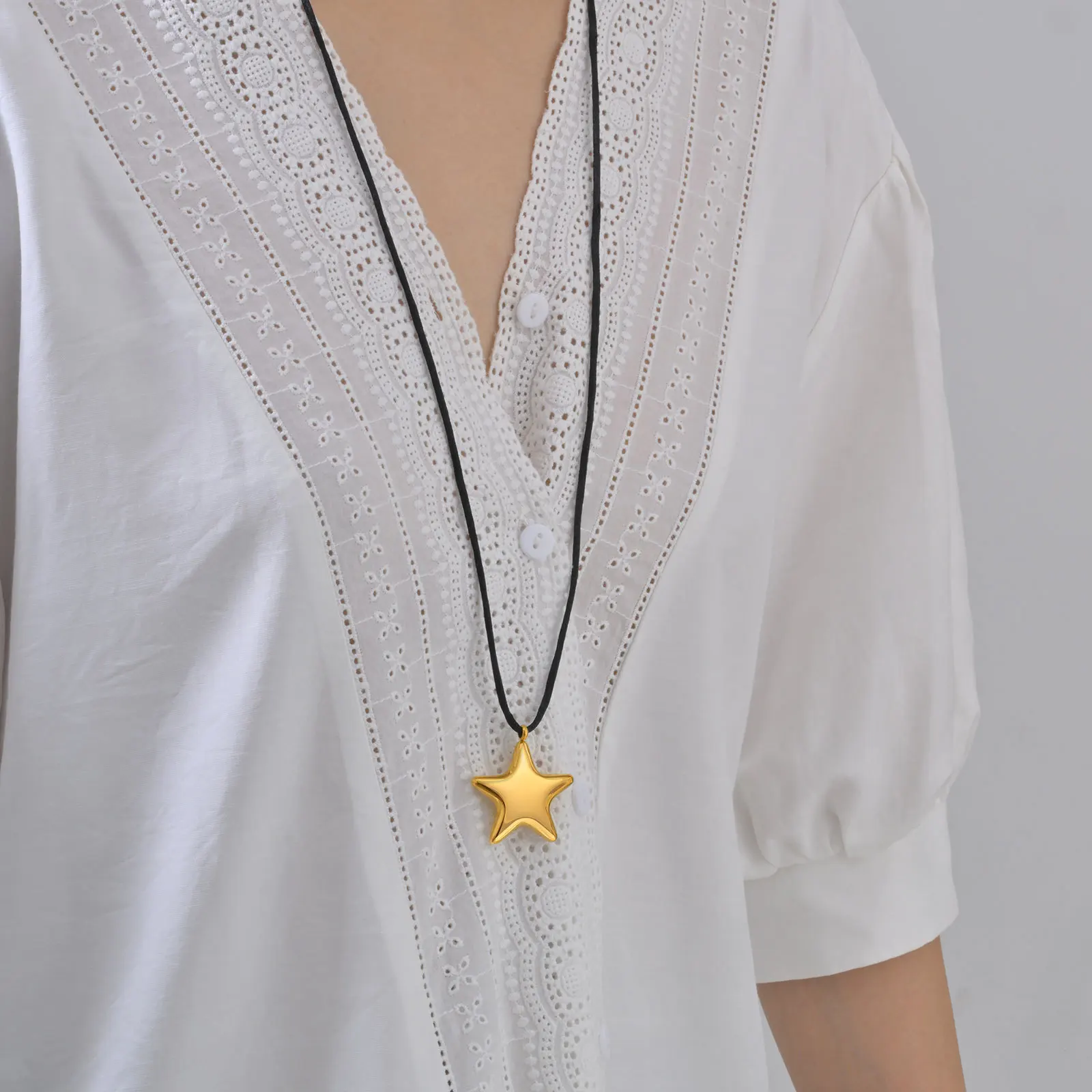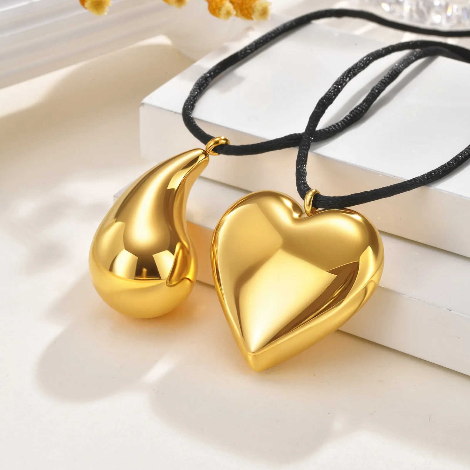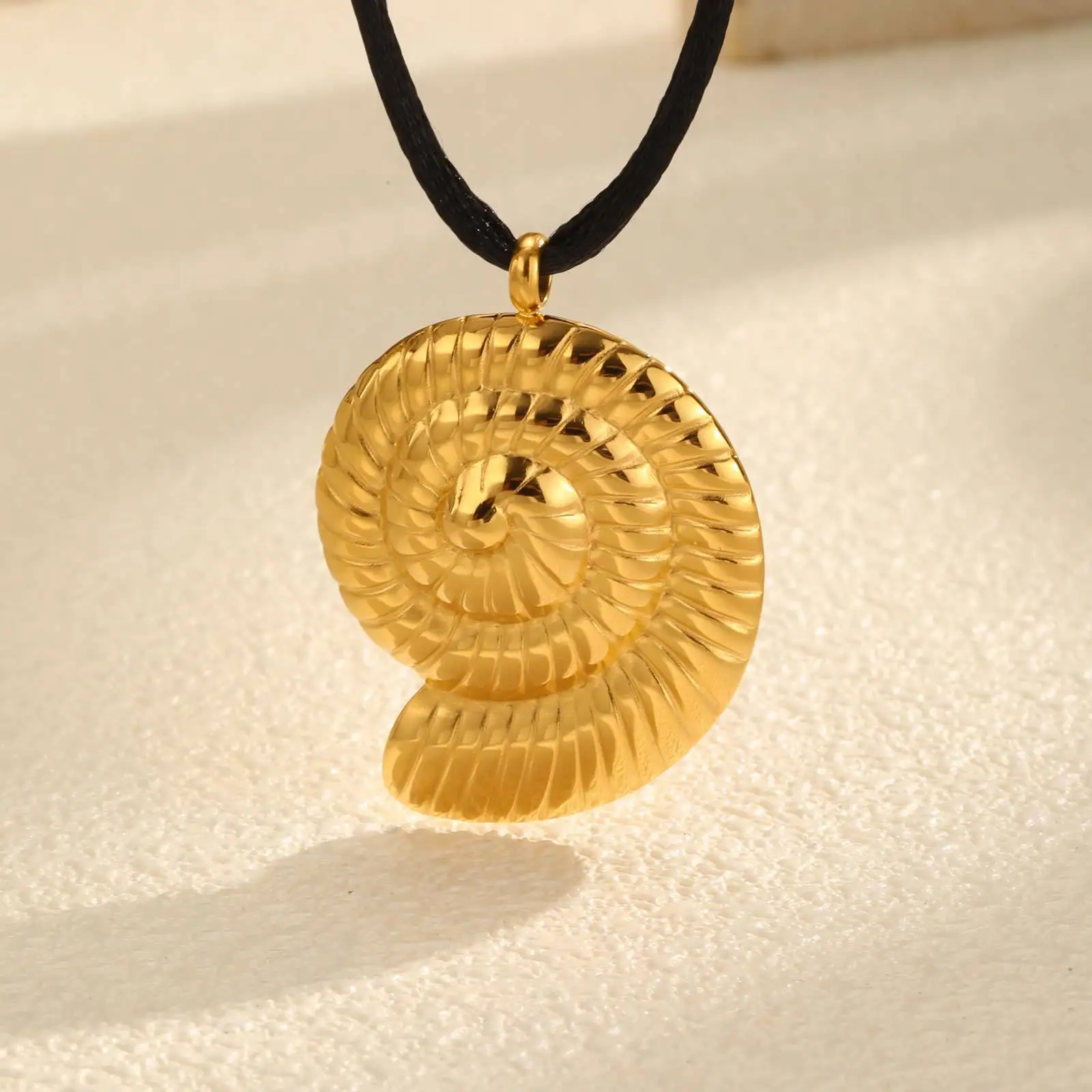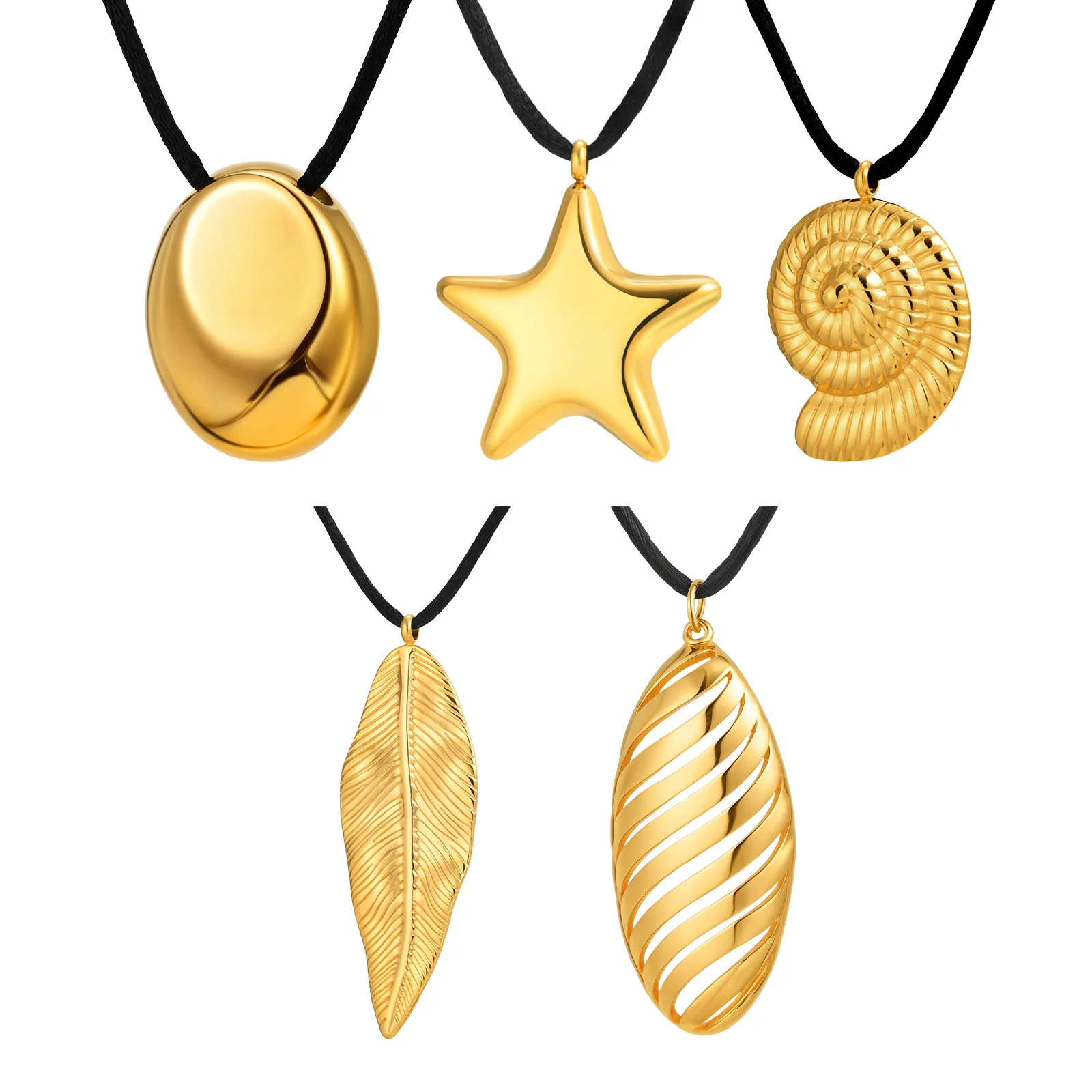 Trendy Ocean Style Waterproof Stainless Steel 18k Gold Plated Pendant Necklace Geometric Conch Heart Leaf Rope Necklace