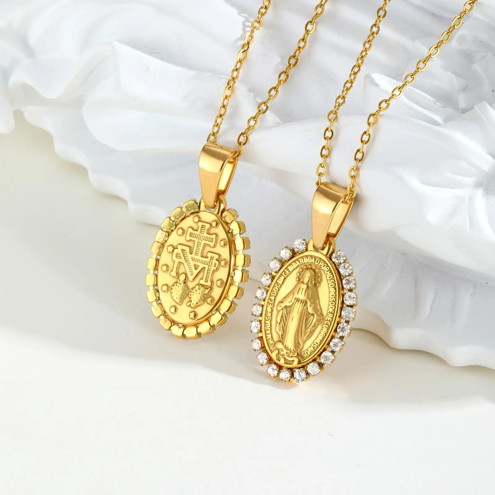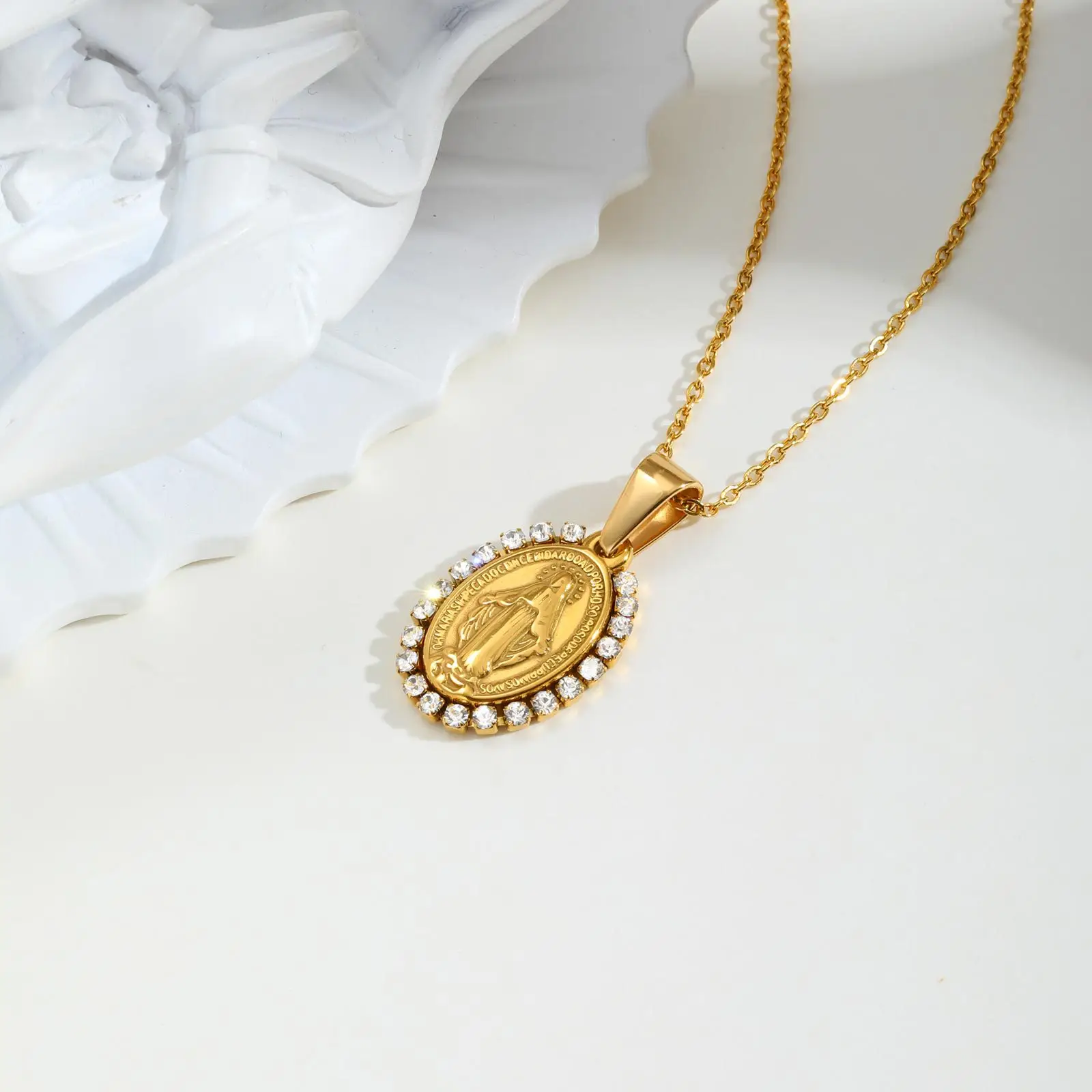 Fashion Jewelry Oval Religious Pendant Necklaces Stainless Steel Maria Necklace for Women