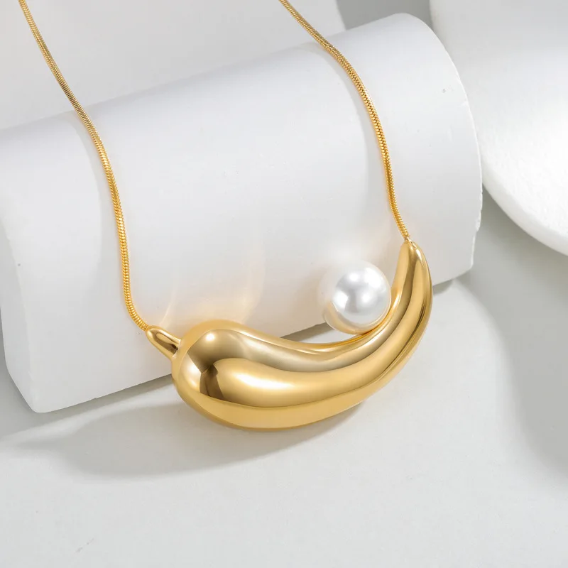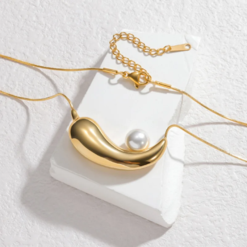 Unique Baroque Pearl Pendant Necklace 18k Gold Plated Stainless Steel Women Wholesale Trendy Jewelry Ins Chic Long Chain