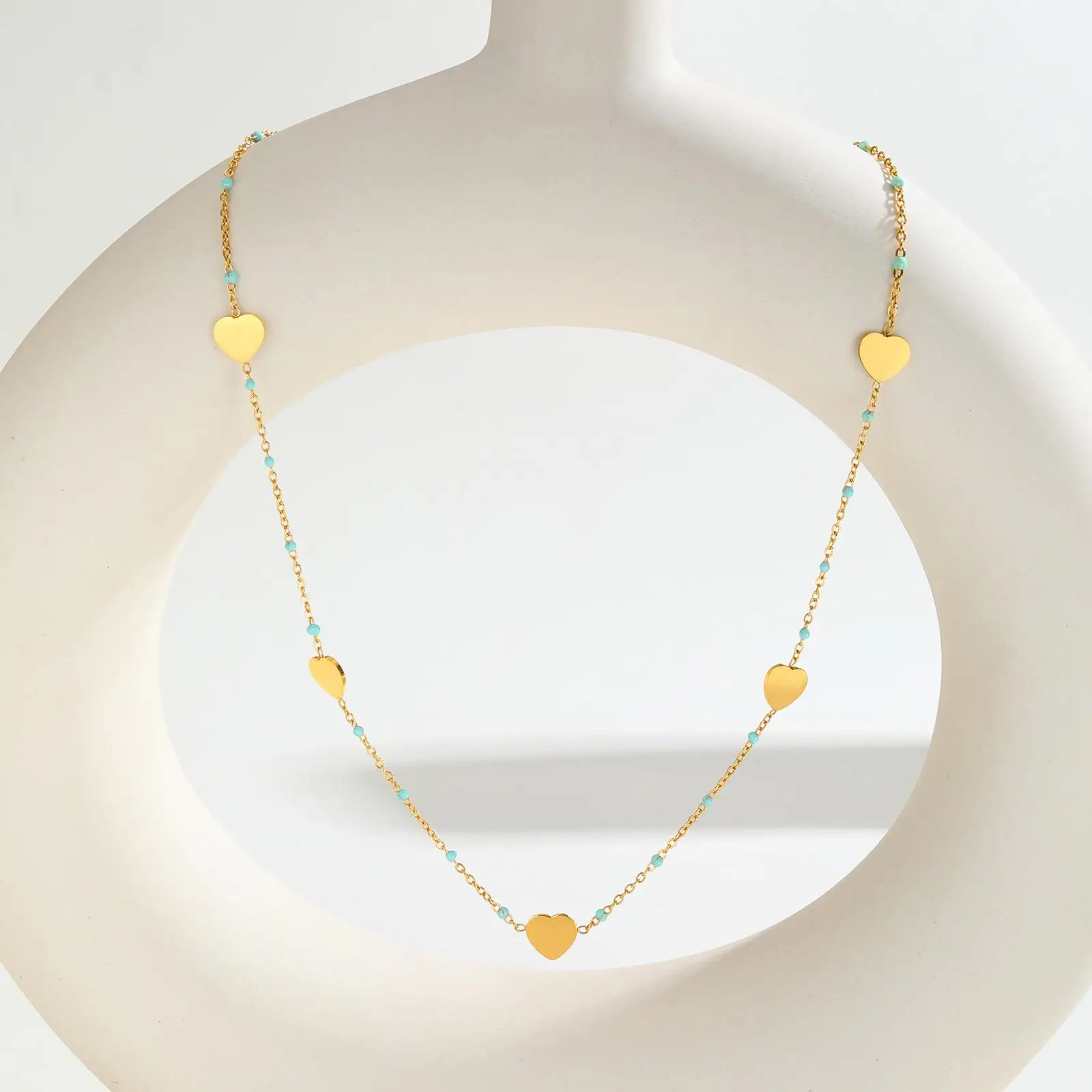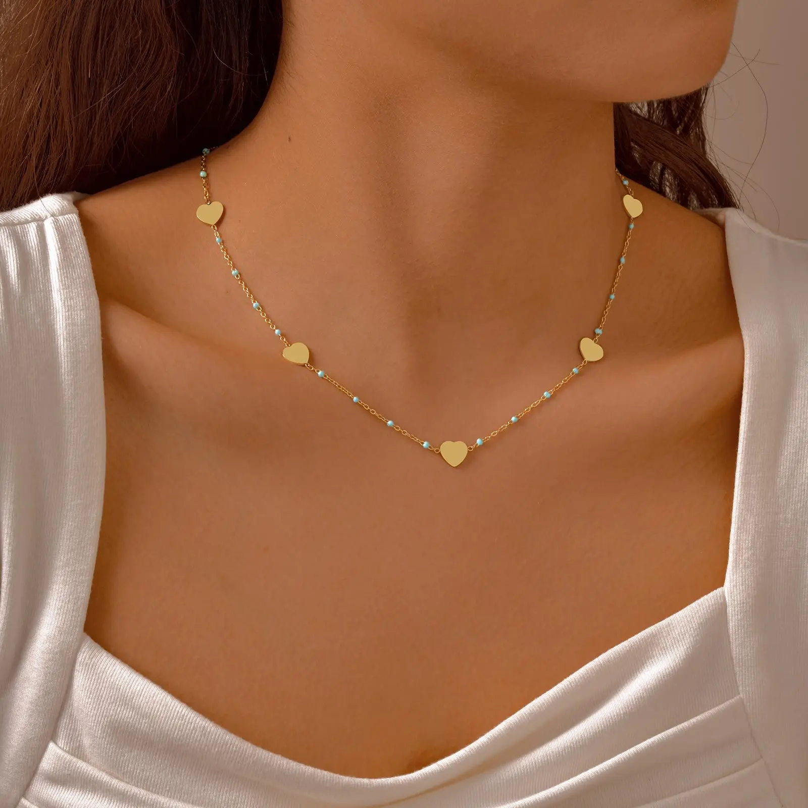 Women Trendy Temptress Clavicle Drop Glue Features Stainless Steel Full-light Blue Heart-shaped Cross Chain Necklace