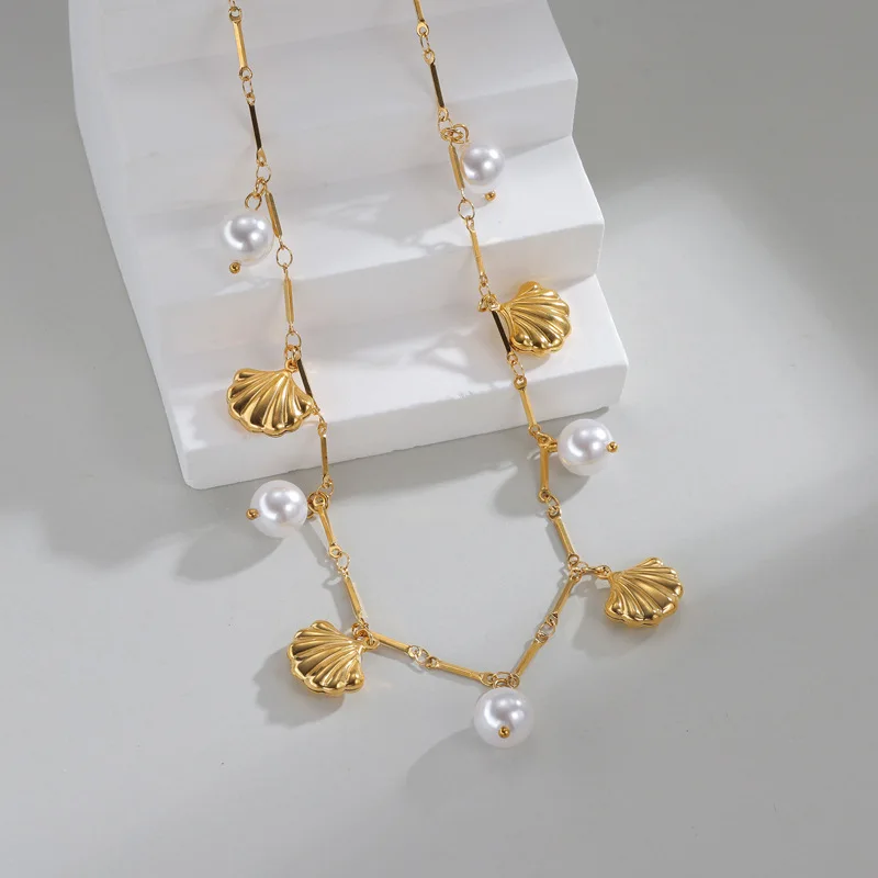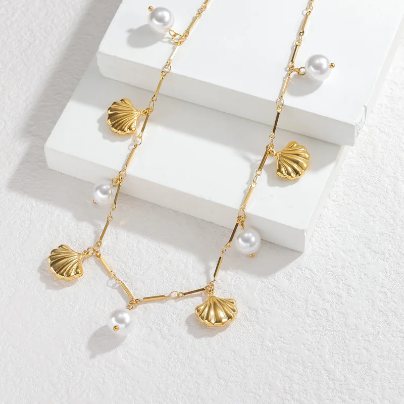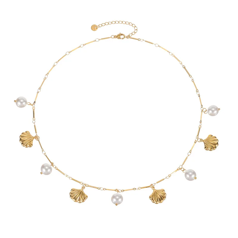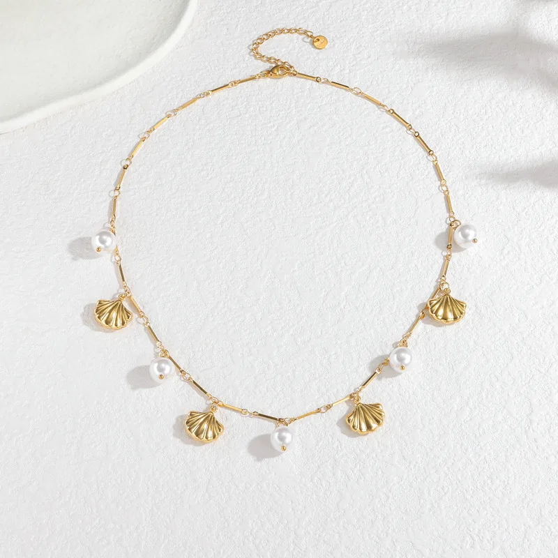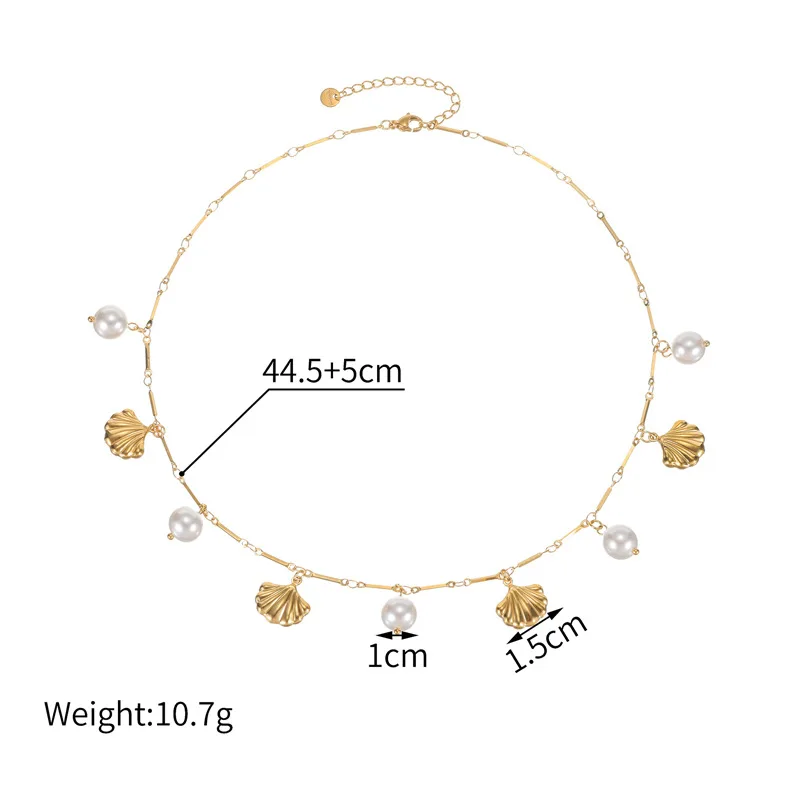 Collier Long Coquillage Pampille En Acier Inoxydable Plaqué or 18K Bijou Tendance Femme