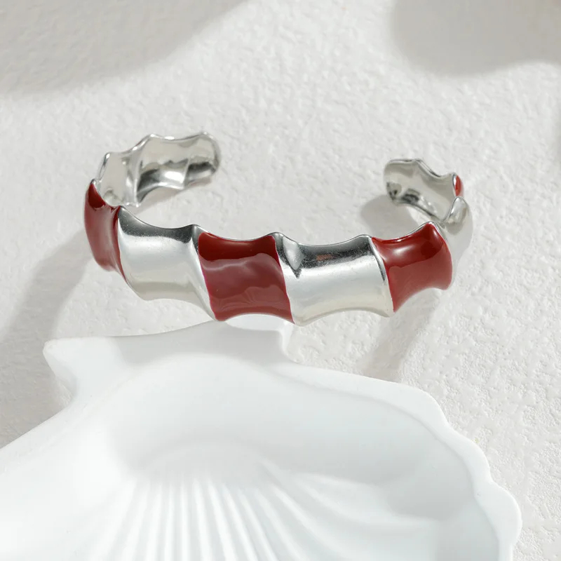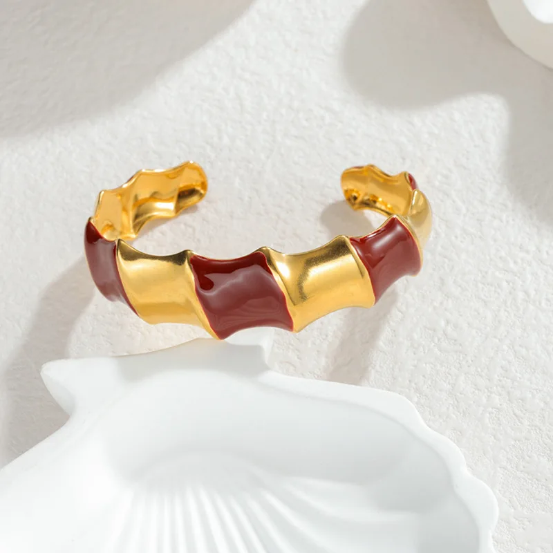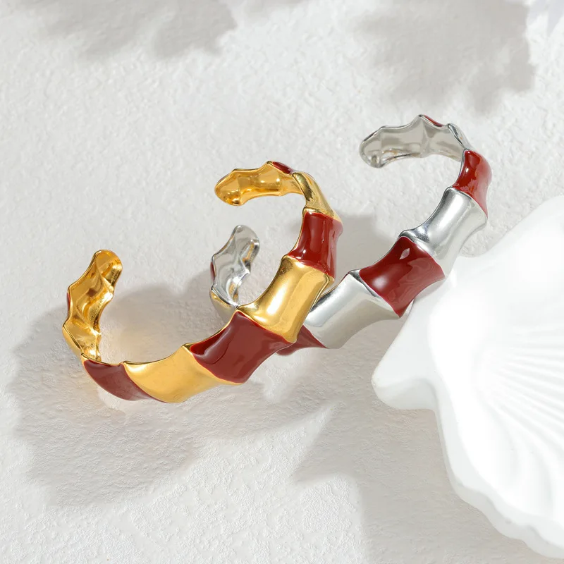 Bohemian Enamel Drop Cuff Bracelet for Women Oversized Open Bangle Colorful Stainless Steel Fashion Body Jewelry Wholesale