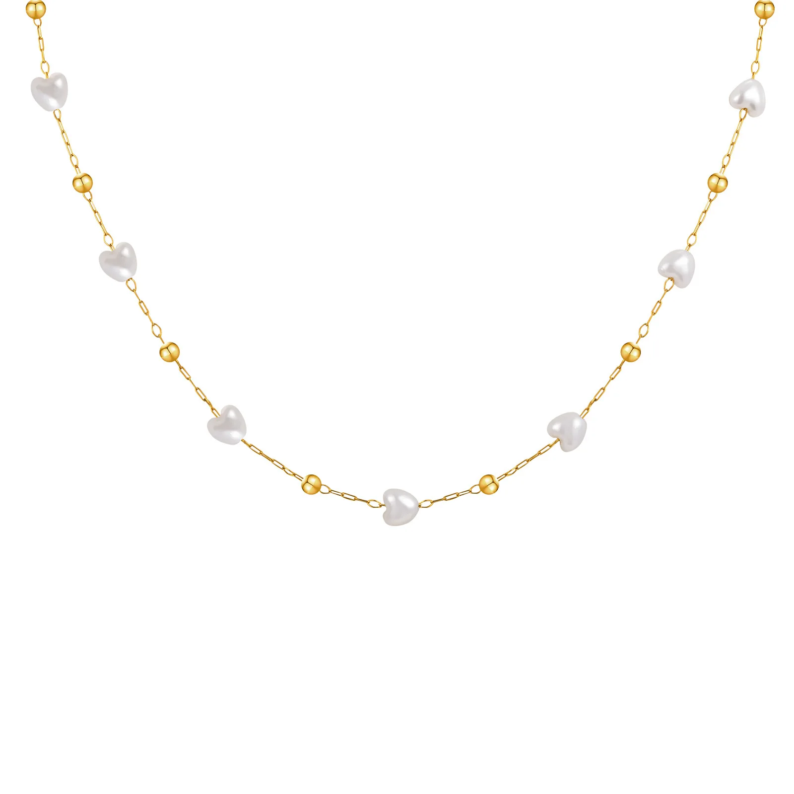 Simple Style Stainless Steel Pearl Choker Necklace Heart Shape Pearl Round Spacer Bead Chain Necklace