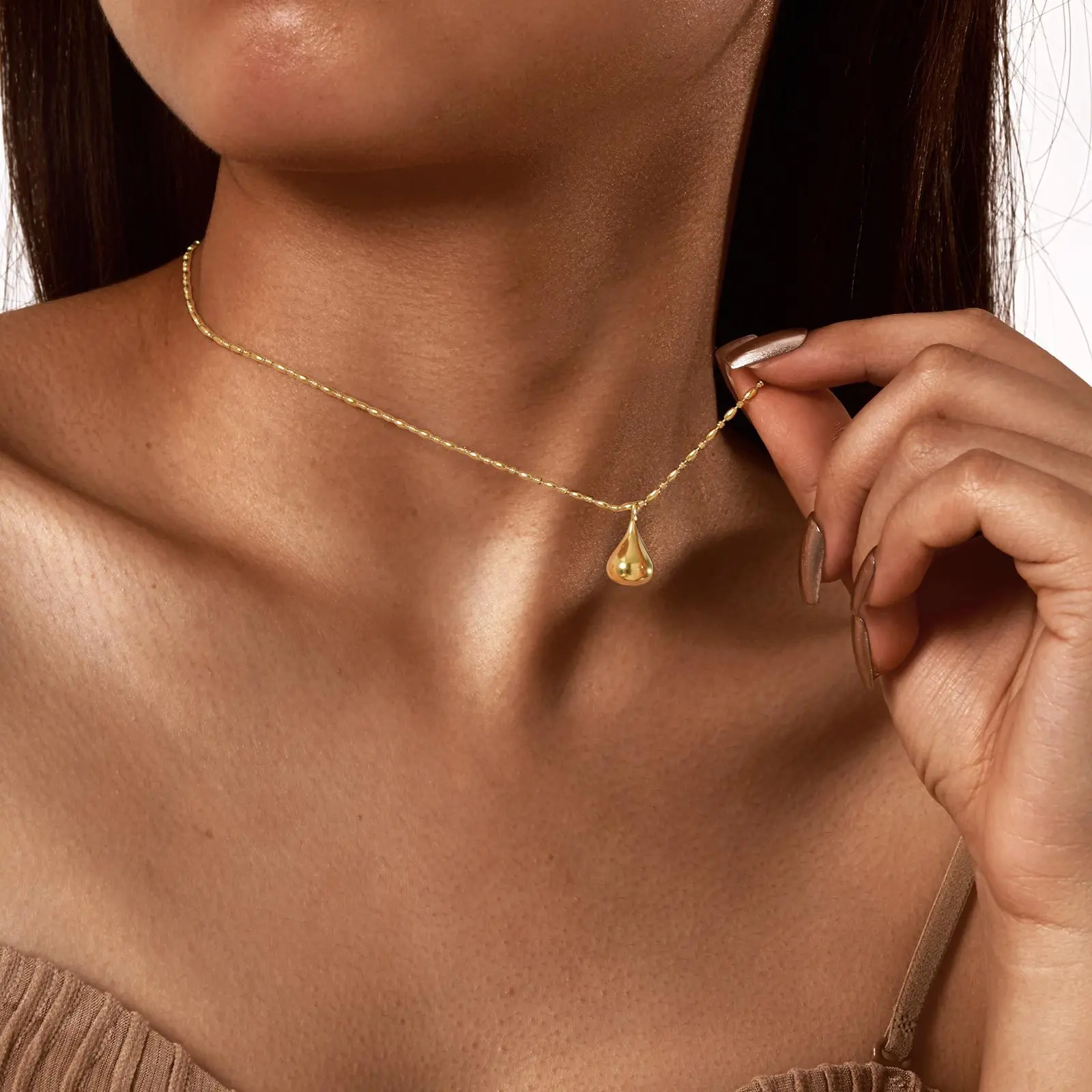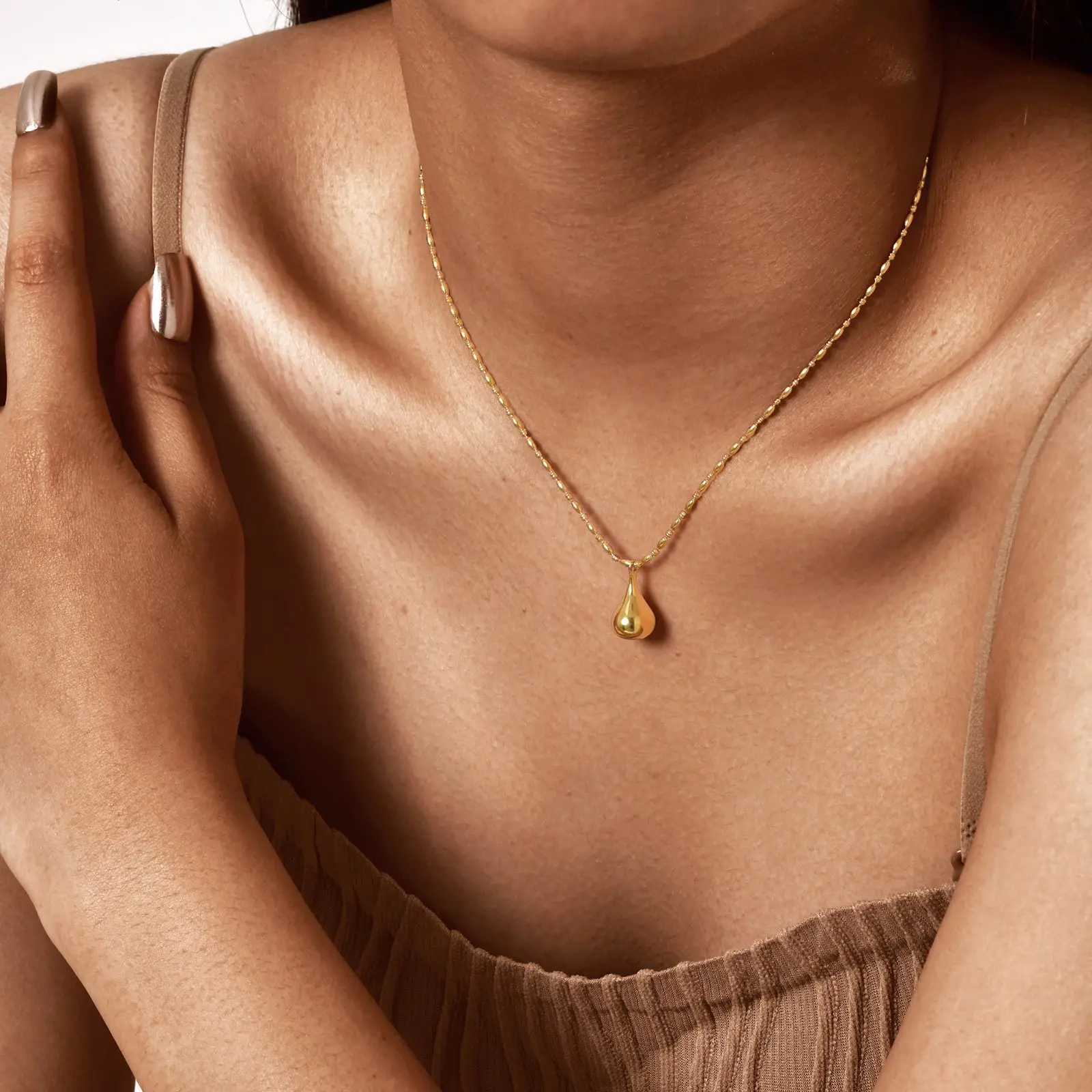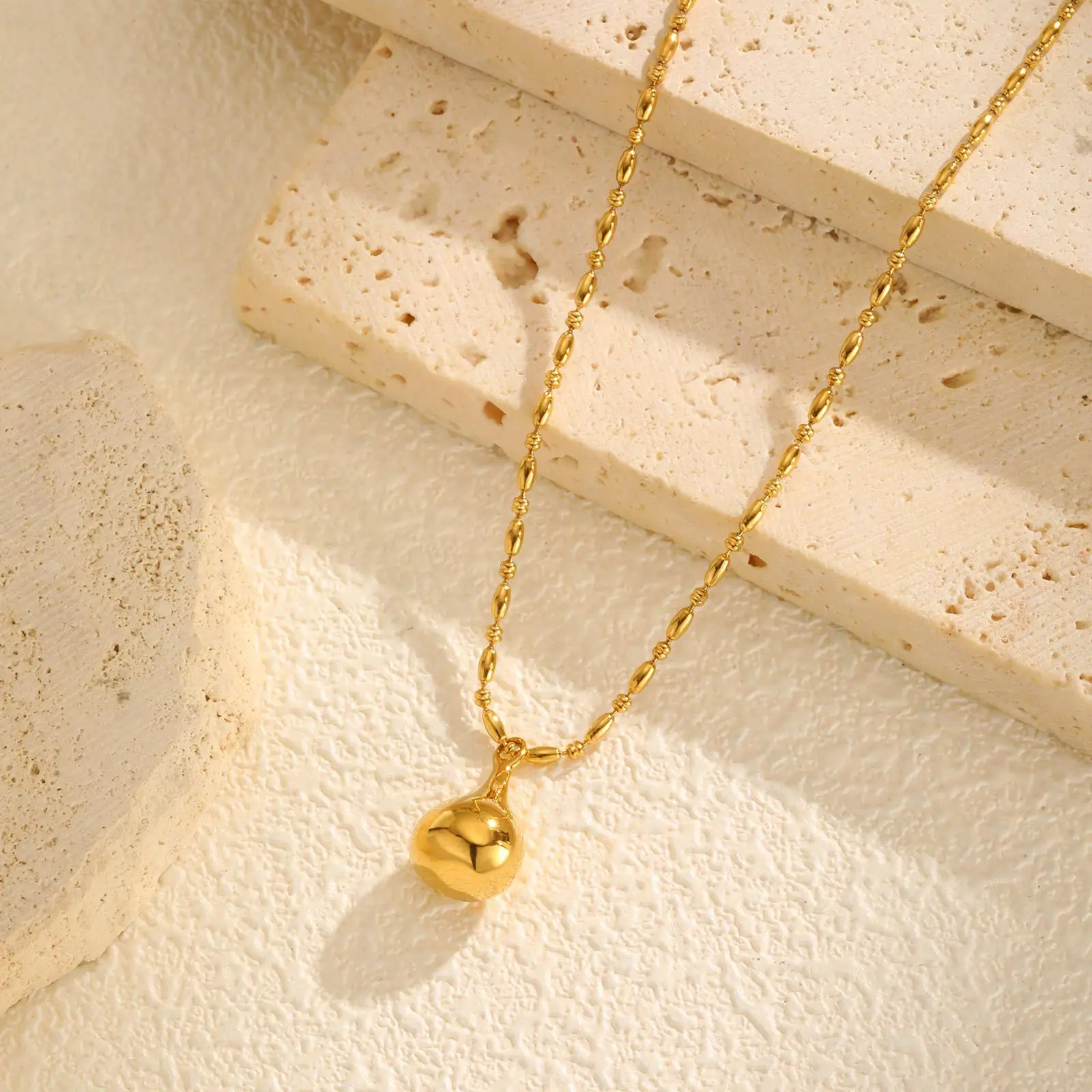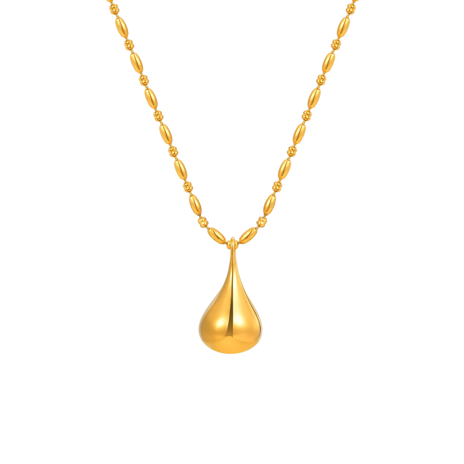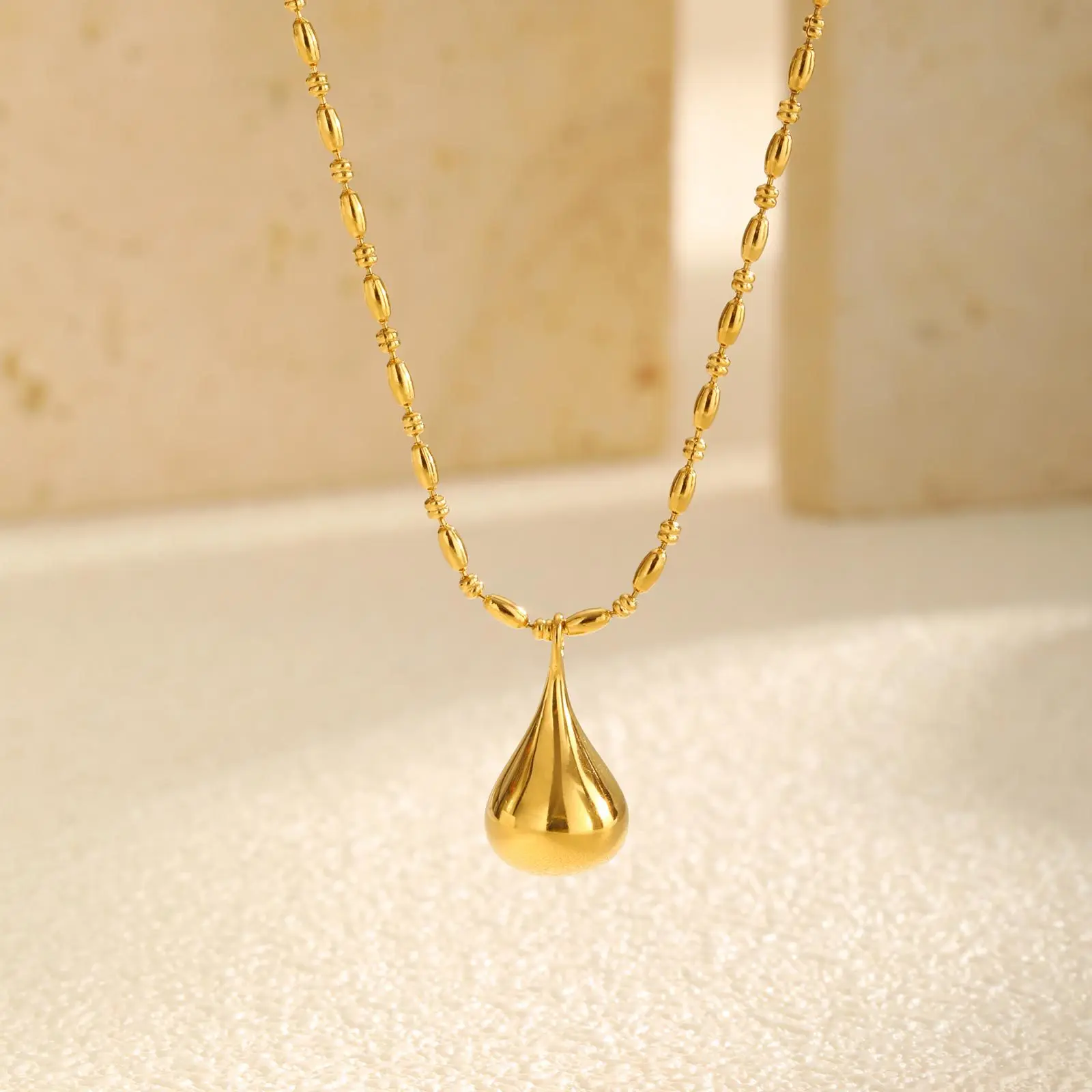 Minimalist Geometric 18k Gold Plated Stainless Steel Necklaces Women's Bead Chain Water Drop Pendant Necklace