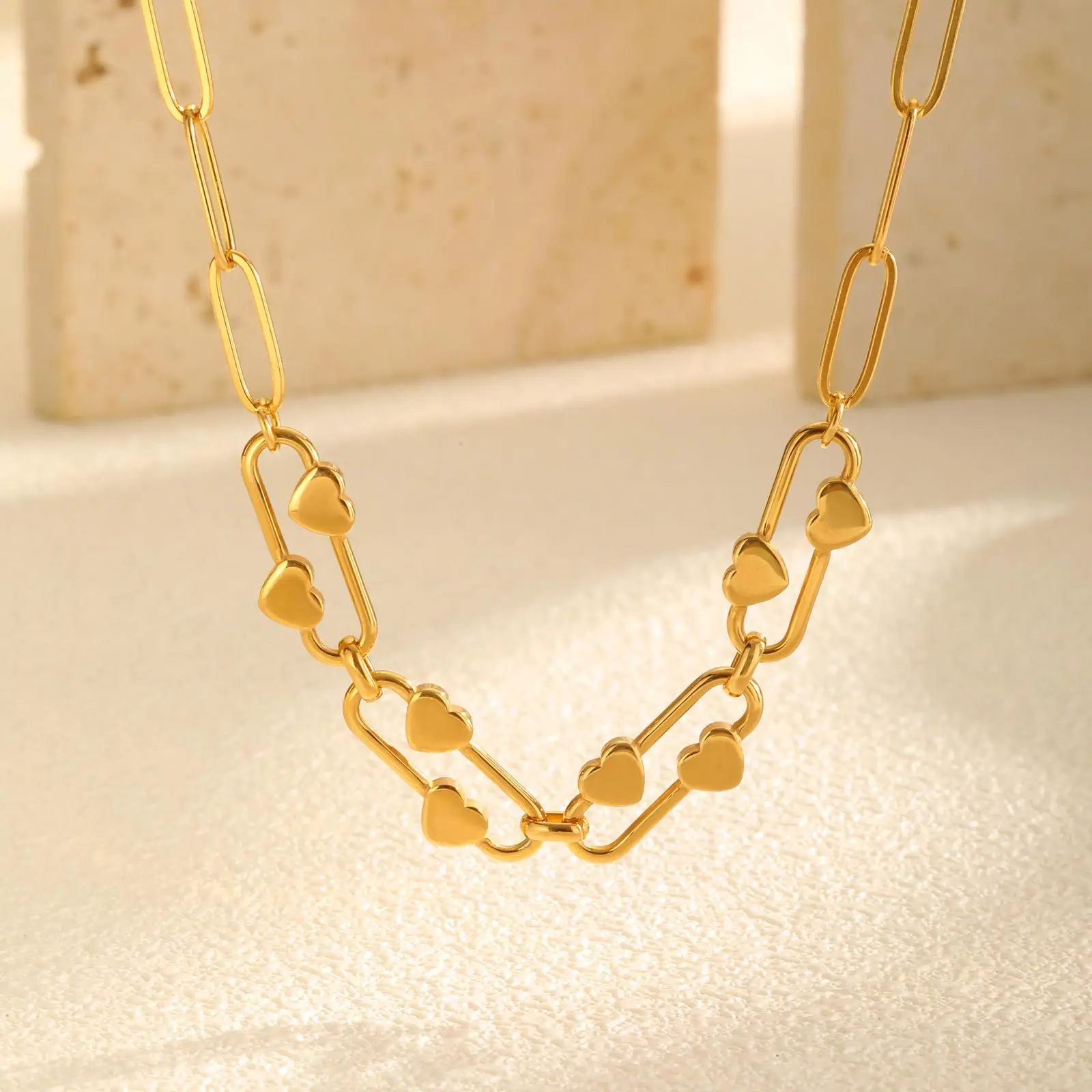 Minimalist Jewelry Gold Color 18k Stainless Steel Choker Necklace Paper Clip Chain Necklace for Women