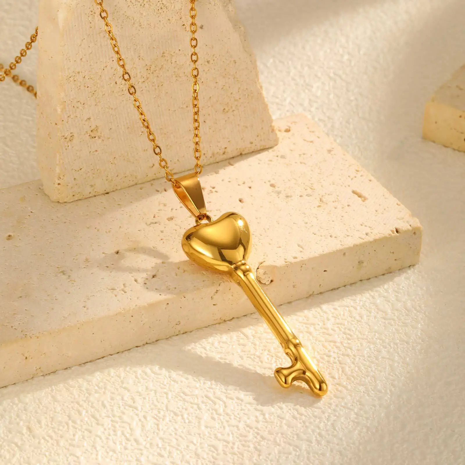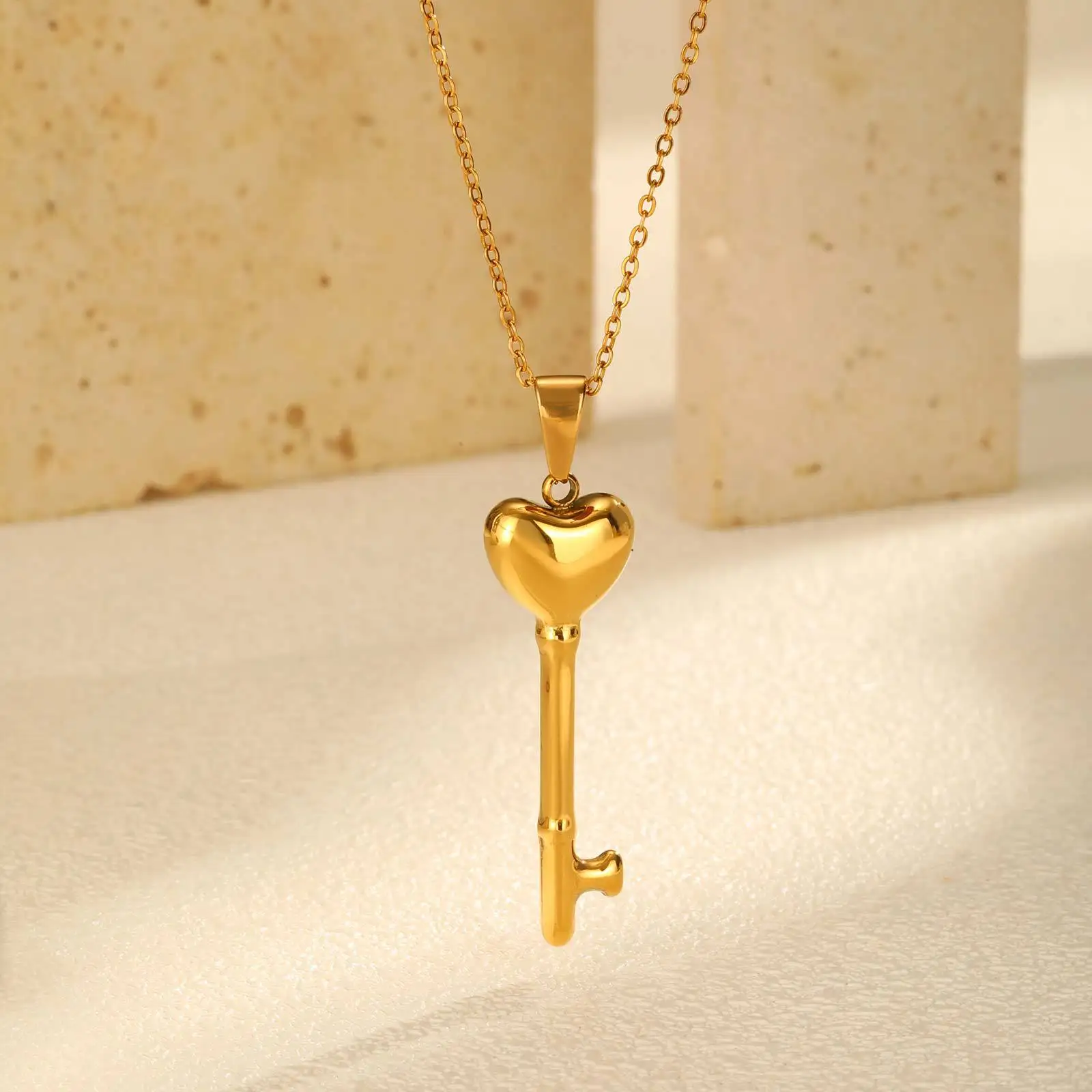 Fashion Jewelry Love Key Pendant Clavicle Necklace Stainless Steel Pendant Necklace for Women Girls