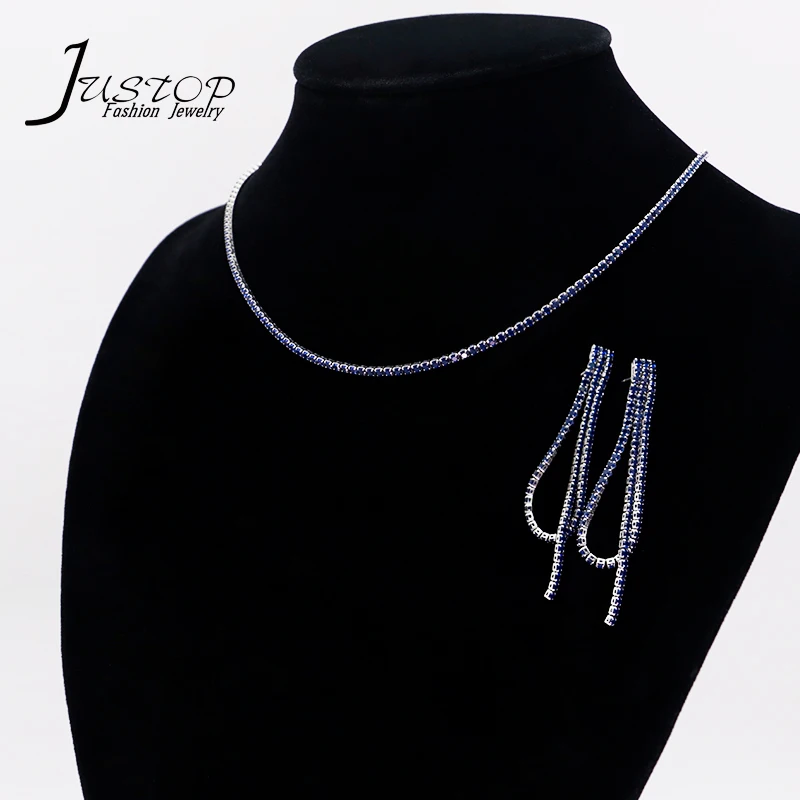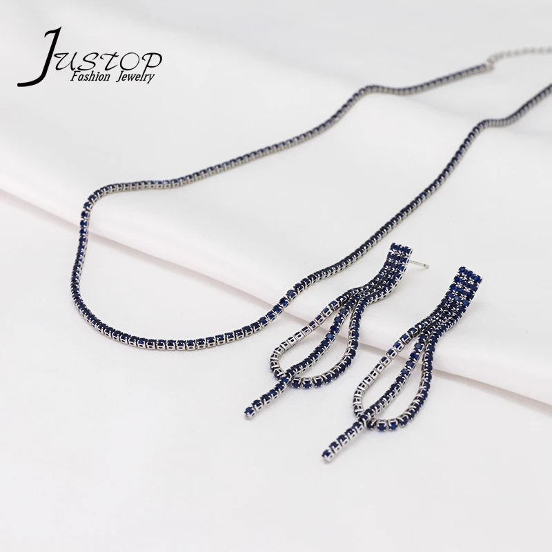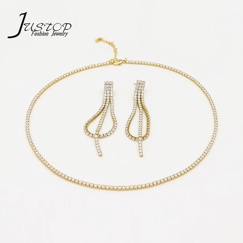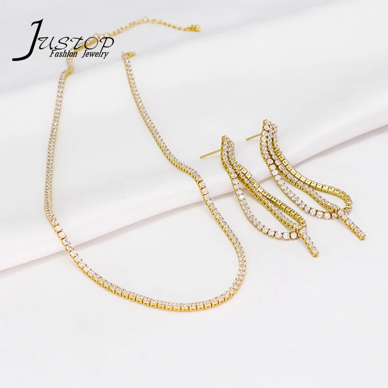 Wholesale Luxury Women 18K Gold Plated Brass Colorful Baguette Cubic Zirconia Jewelry Tennis Necklace Earring Jewelry Set
