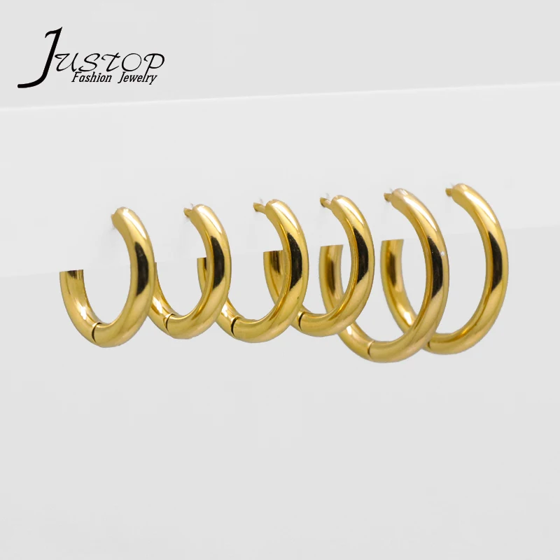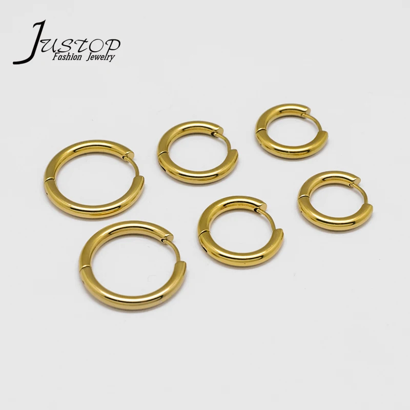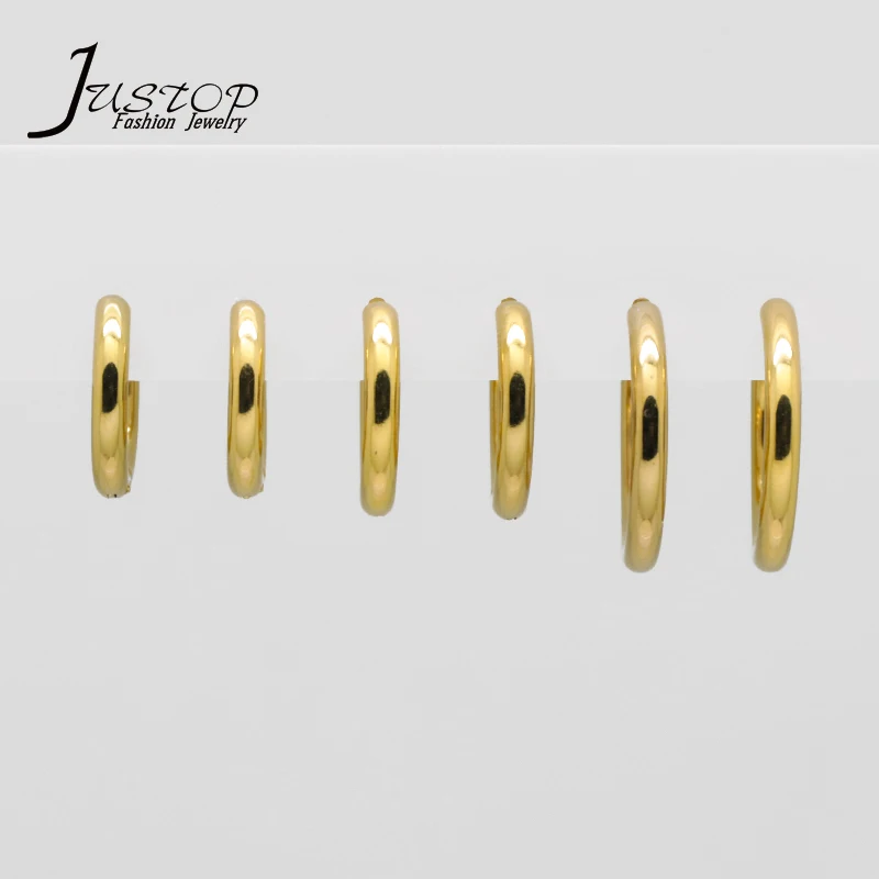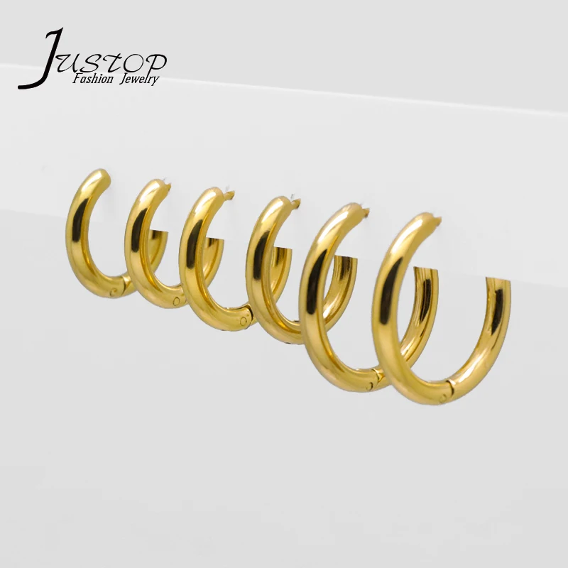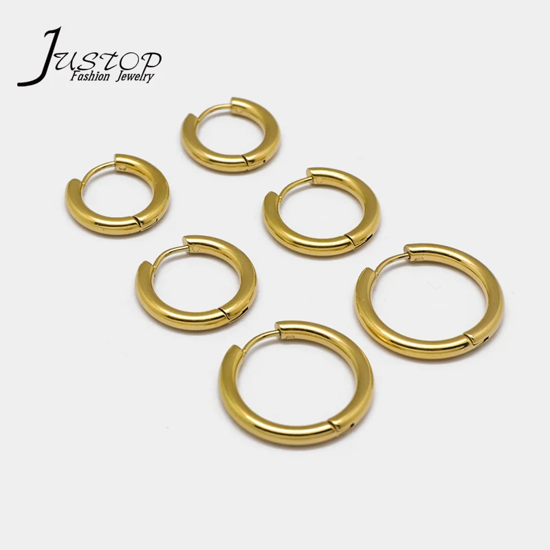 Hip Hop Fashion Women Punk Stainless Steel Gold Plated Round Hoop Clip Earrings Jewelry