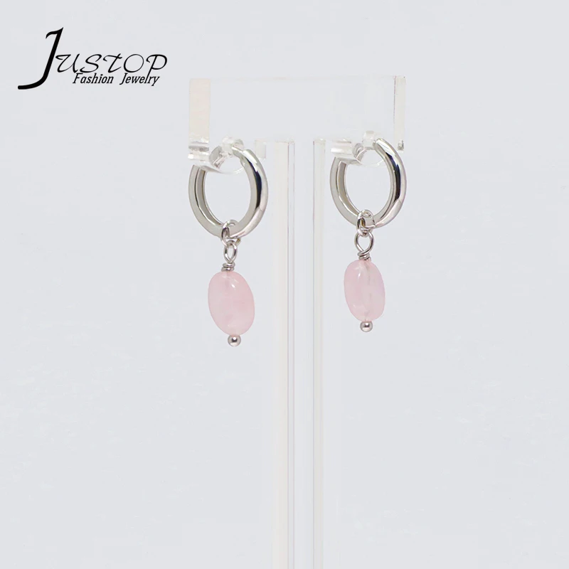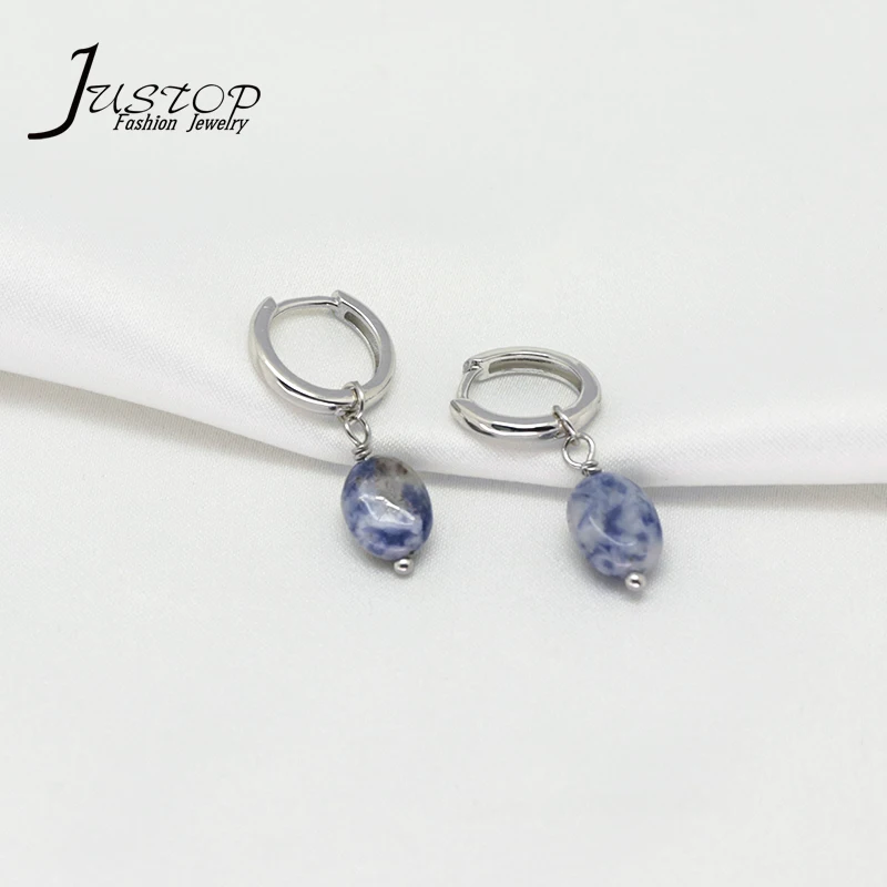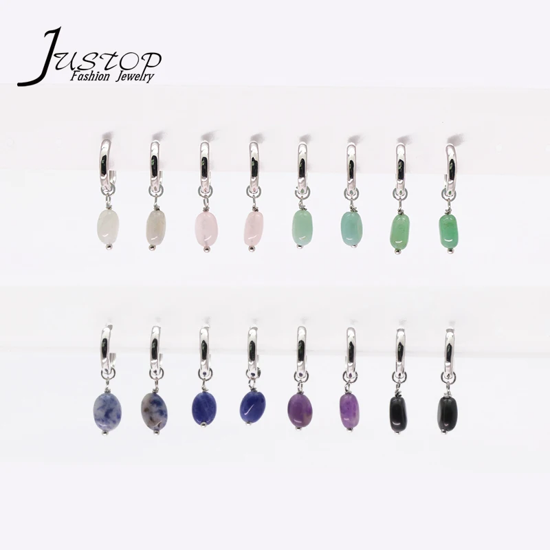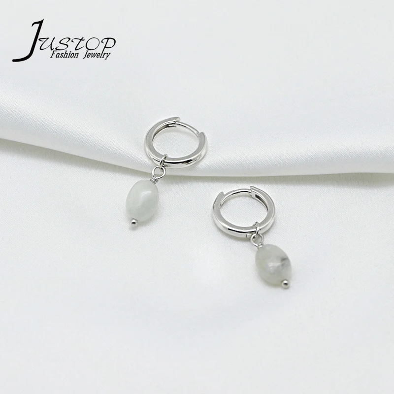 Simple Natural Stone Jewelry Ladies 925 Sterling Silver Hoop Green Aventurine Small Jade Drop Earrings Jewelry