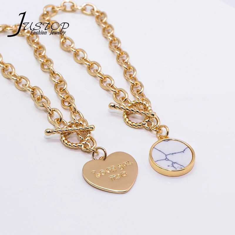Brass Gold Plated Fashion OT Clasp Engrave Heart Pendant OT Coarse Chain Bracelets Gift