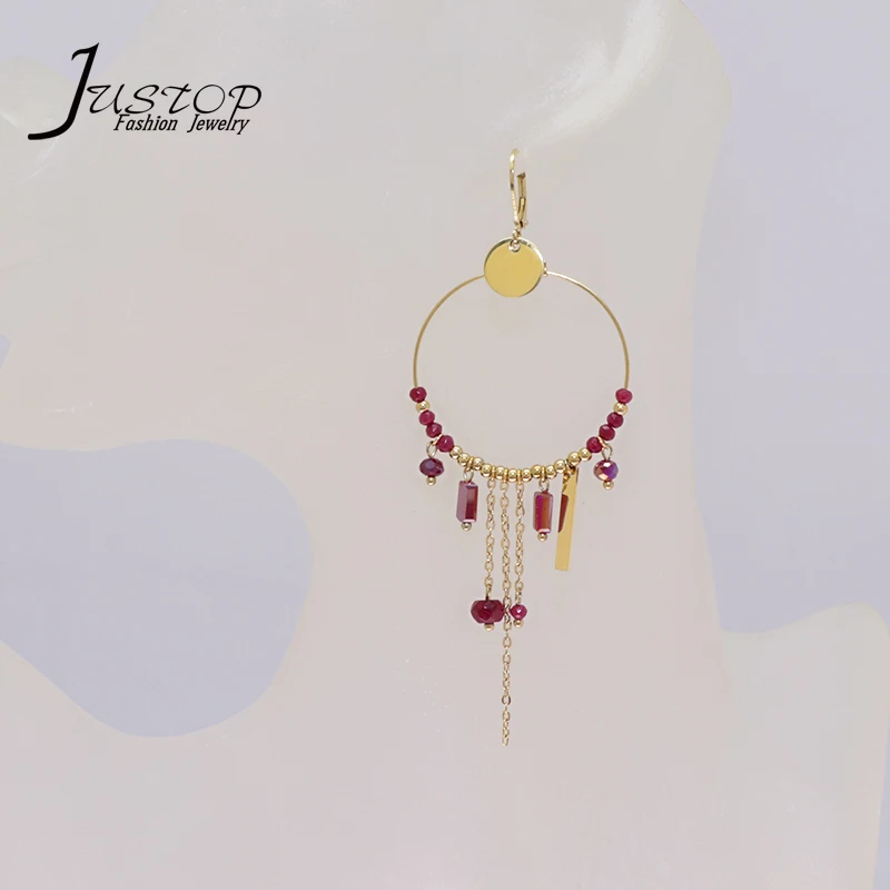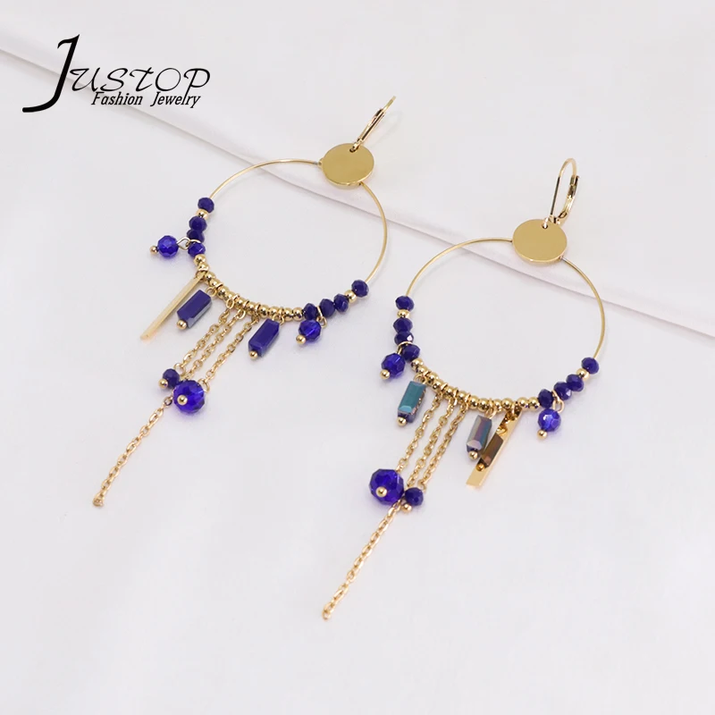Summer Beach Gifts Fashion Jewelry Bohemian Stainless Steel Metal Beads Tassels Hoop Earring Jewellery for Women