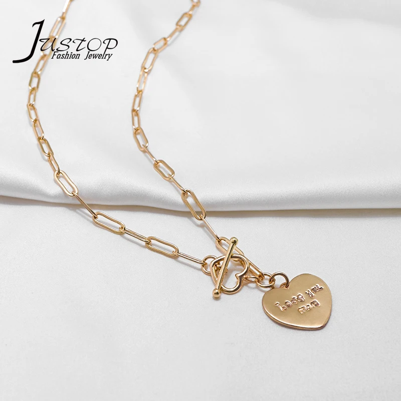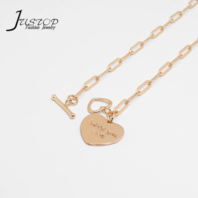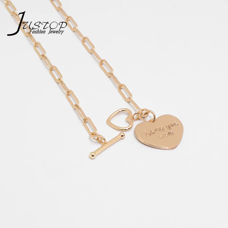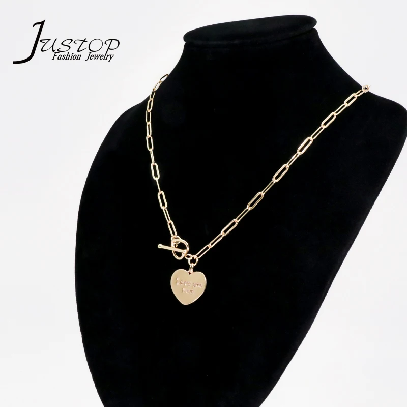 Custom Personalized Engrave Logo Women Valentines Day Gift Jewelry Brass Gold Chain Heart Pendant Necklace