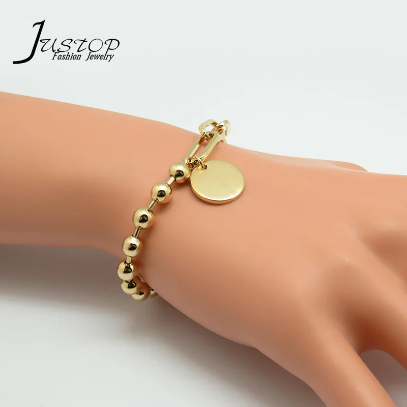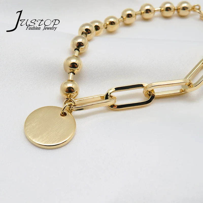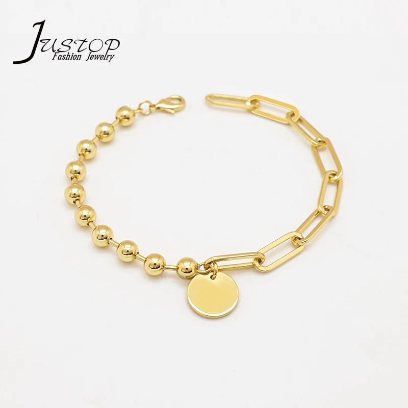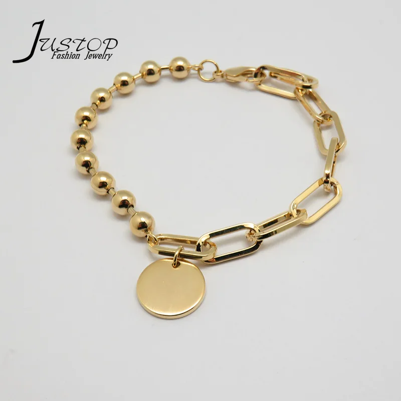 Wholesale Luxury Jewelry Gold Half Beads Chain Link Blank Round Pendant Fancy Chain Charms Bracelet for Lady