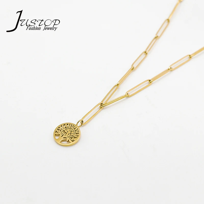 18K Gold Plated Geometric Life Tree Titanium Steel Clavicle Chain Pendant Necklace for Women