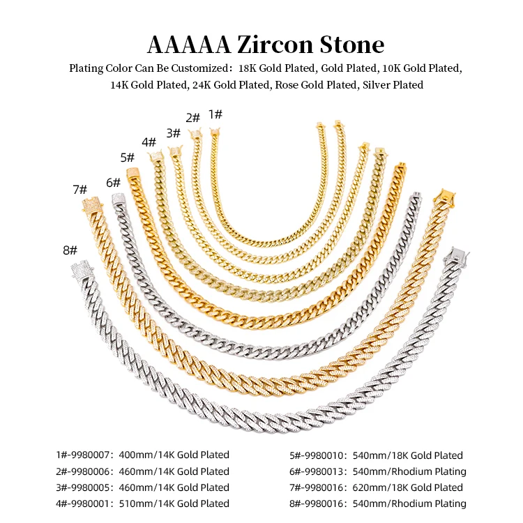 Minimalist Zircon Jewelry Vendors Golden Finish Miami Cuban Link Chain Necklace Men's Hip Hop Jewelry Fashion Necklaces