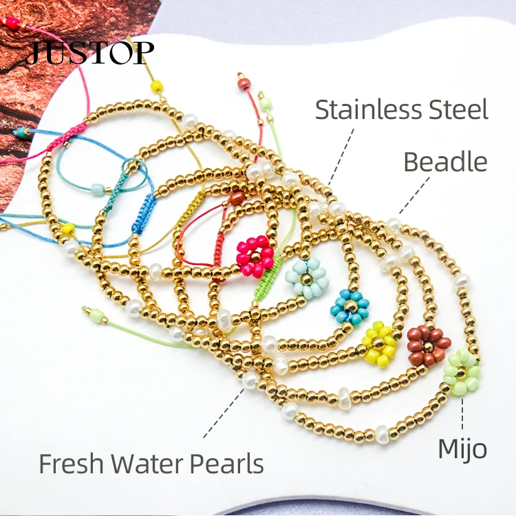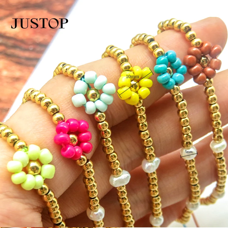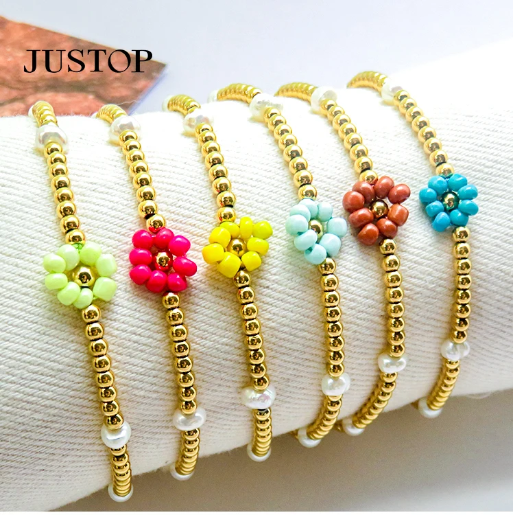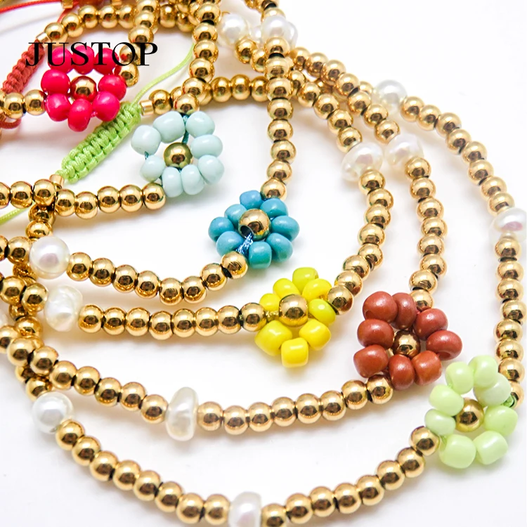 Daisy Flower Fashion Jewelry Crystal Baroque Pearl Gold Plated Miyuki Donut Bracelets for Women Jewellery
