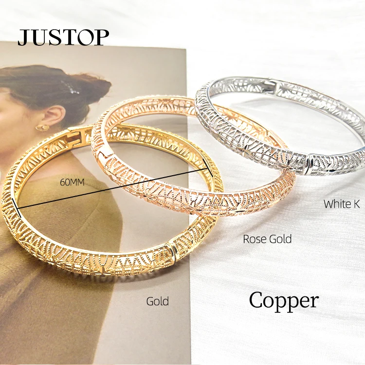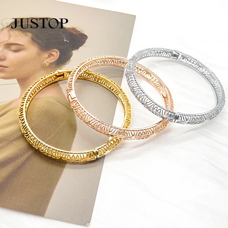 Luxury New Brass 18K Gold Plated Clover Hollow Bangles for Women Jewelry Wedding Gifts of Jewelry Wholesale