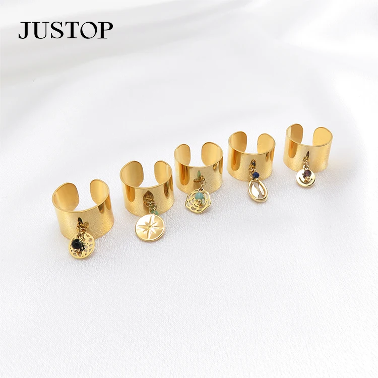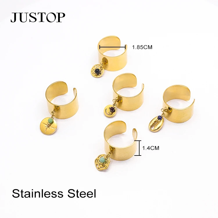 Minimalist 18k Gold Plated Filled Stainless Steel Jewelry Charm Pendant Wide Adjustable Opening Finger Charms Rings for Women