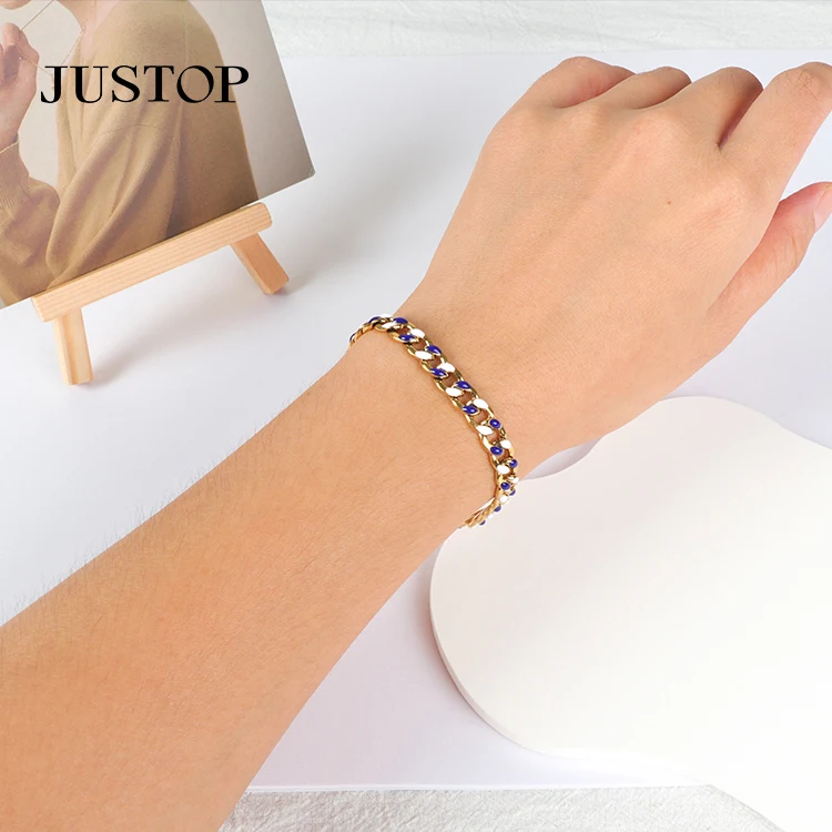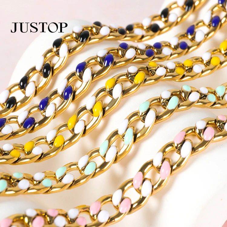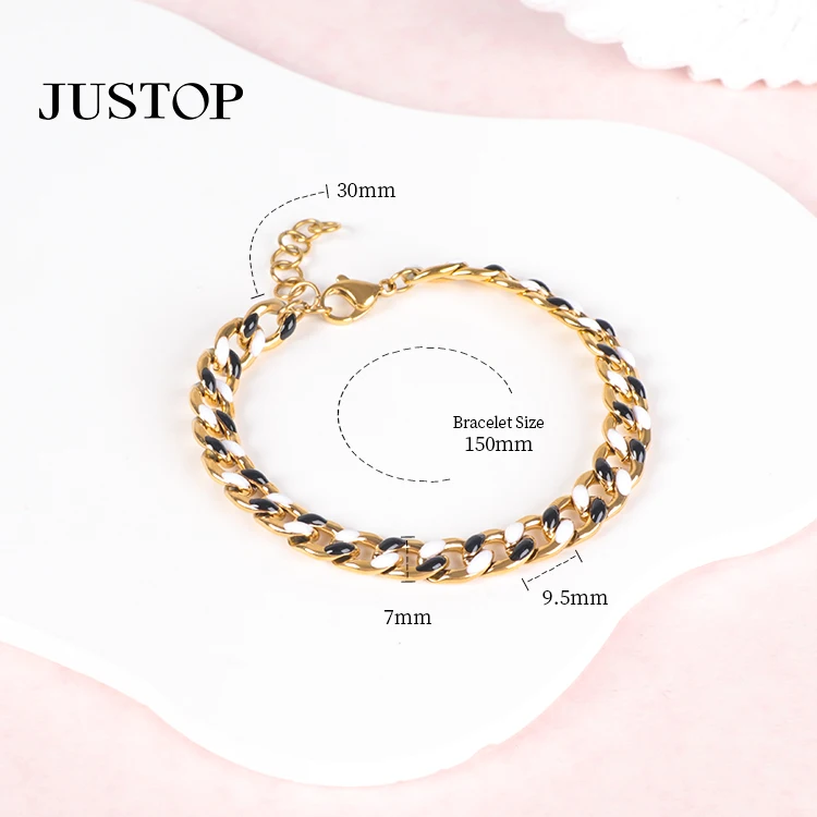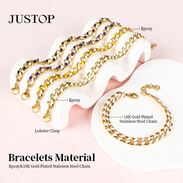 Fashion Hip Hop Charms Metal Miami Chain Stainless Steel Gold Plated Chunky Men Enamel Cuban Chain Bracelet