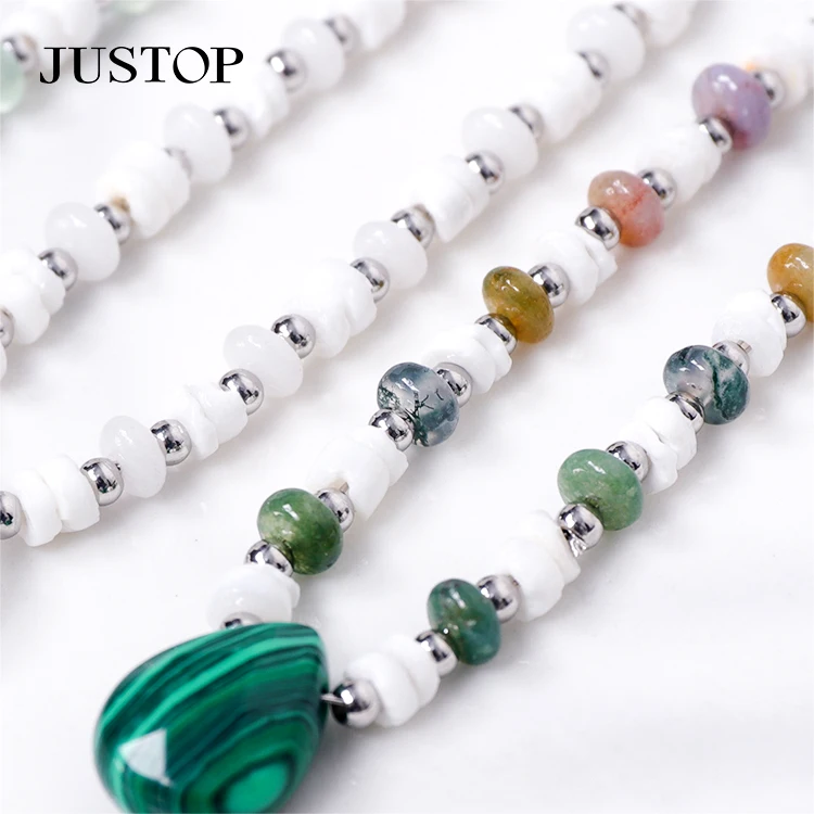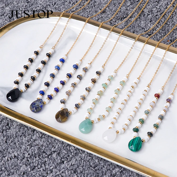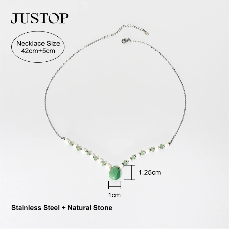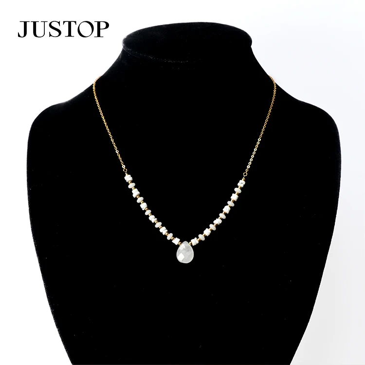 Classic Simple High Quality White Jade Gemstone Stainless Steel Stone Pendant Necklace Jewelry