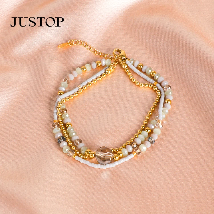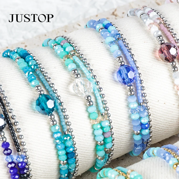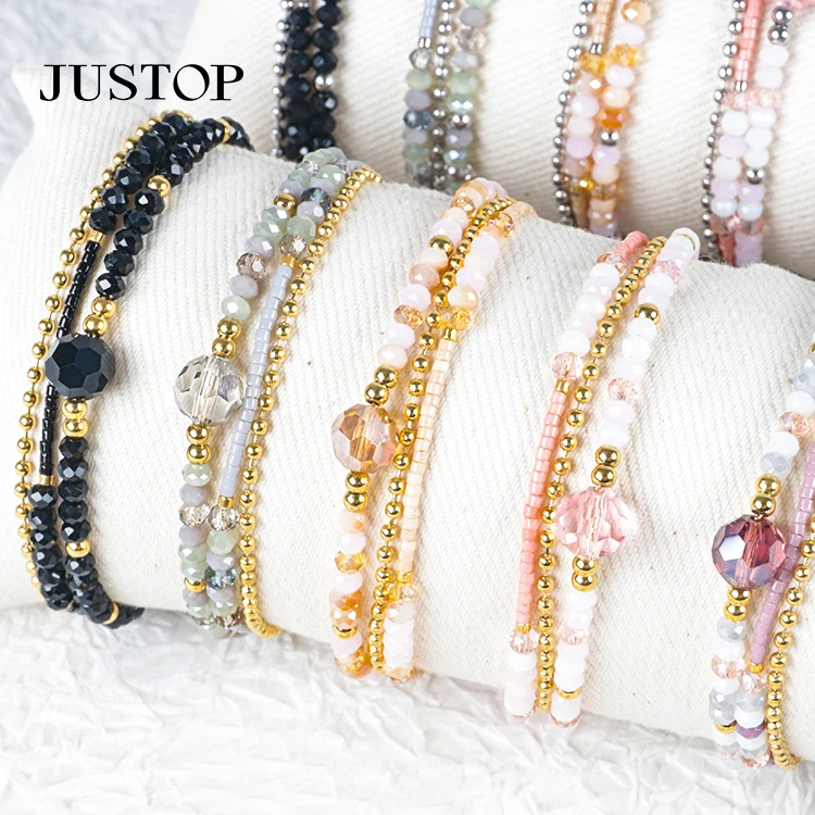Popular Multicolor Tube Crystal Glass Making Kit Beads Beaded Woman Stacked Bracelet Sets