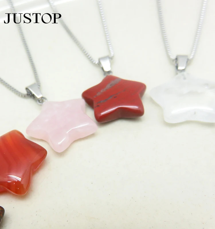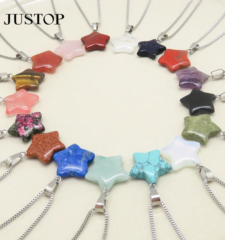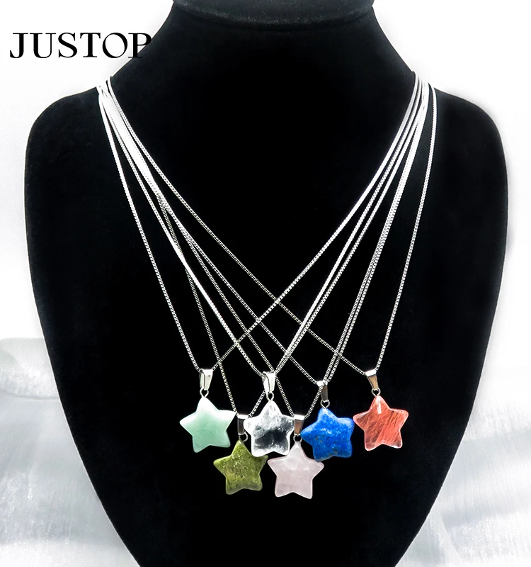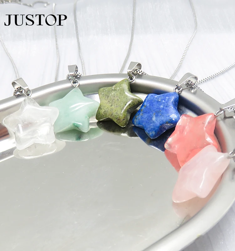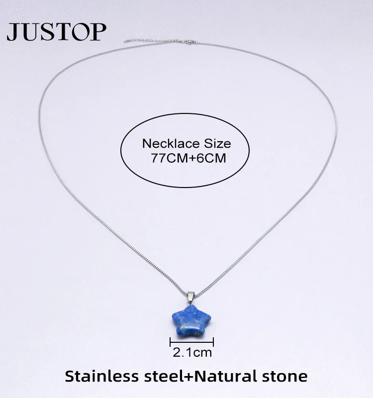 Wholesale Women Vintage Natural Stone Stainless Steel Chain Resin Opal Star Pendant Necklace for Women Jewelry
