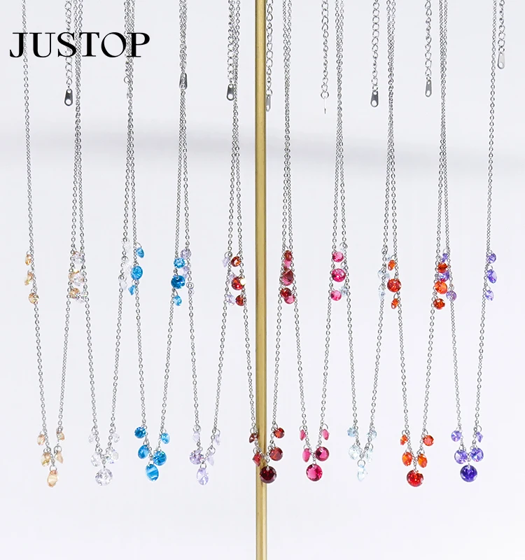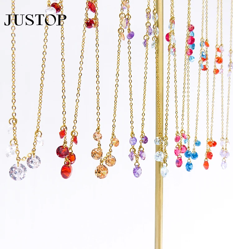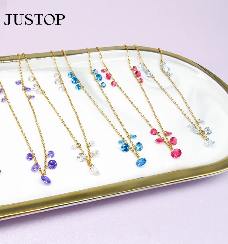 European and American Fashion New Stainless Steel 18K Gold Crystal Zircon Pendant Choker Necklace Jewelry