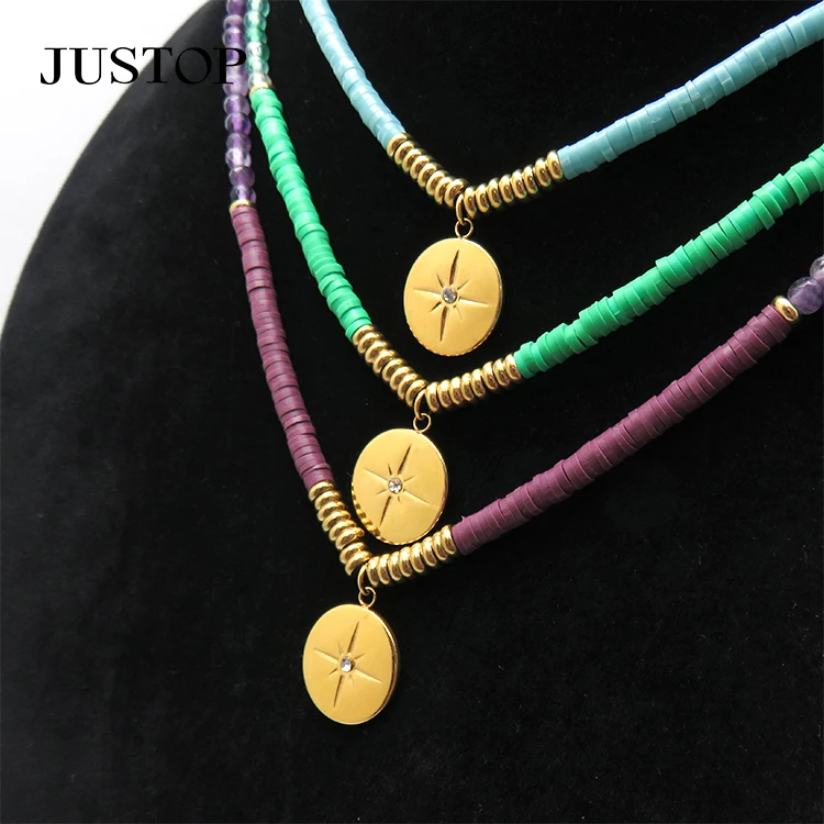 Trendy Gold Plated Beads for Jewelry Making Choker Women Green Jade Chain Stainless Steel Star Pendant Necklace