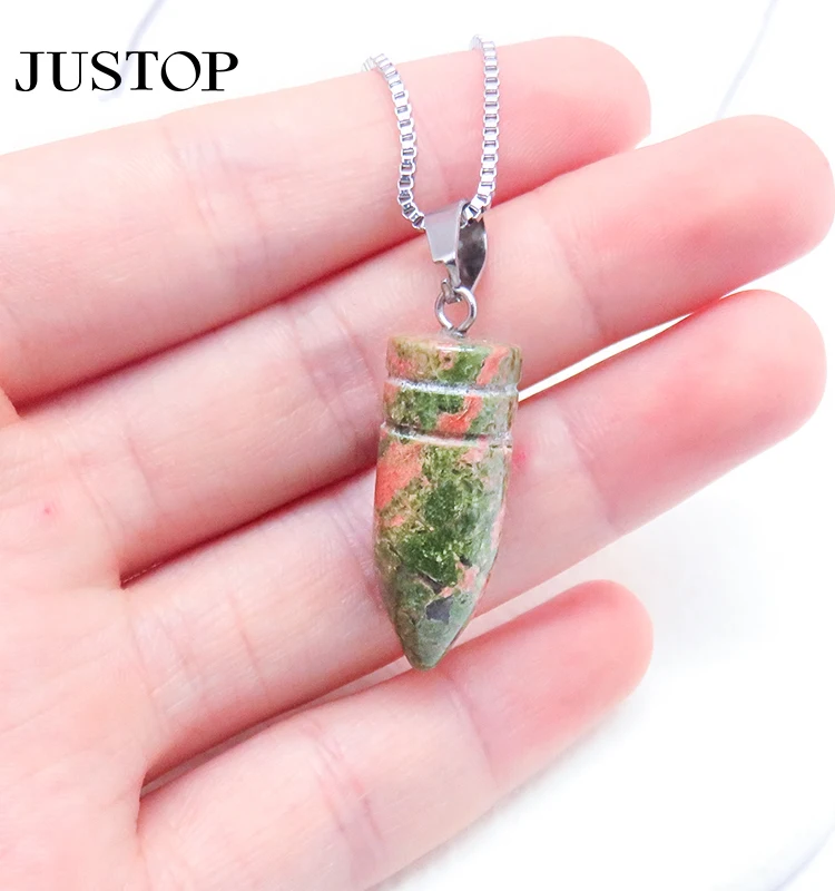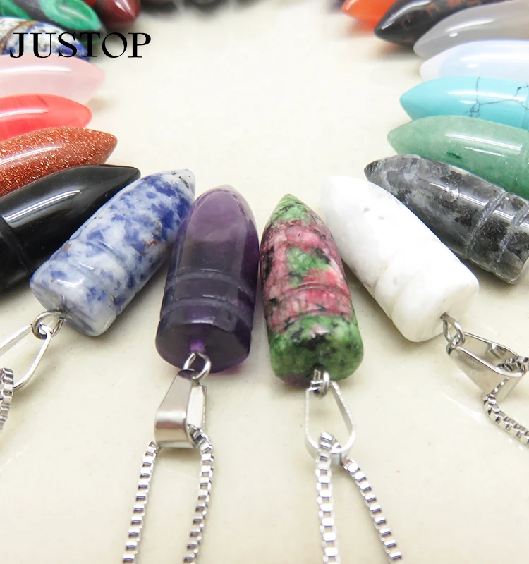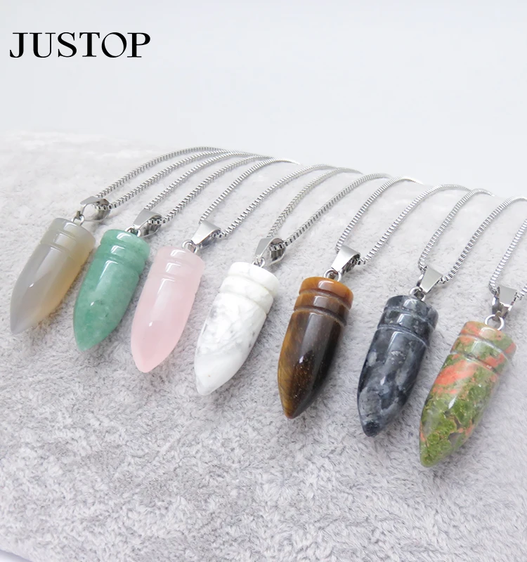 Boho Ethnic Retro Colorful Crystal Stone Geometric Gemstone Natural Stone Pendant Necklace Jewelry