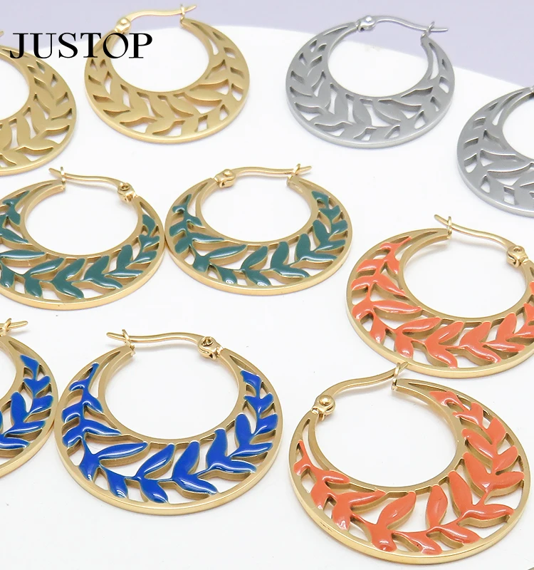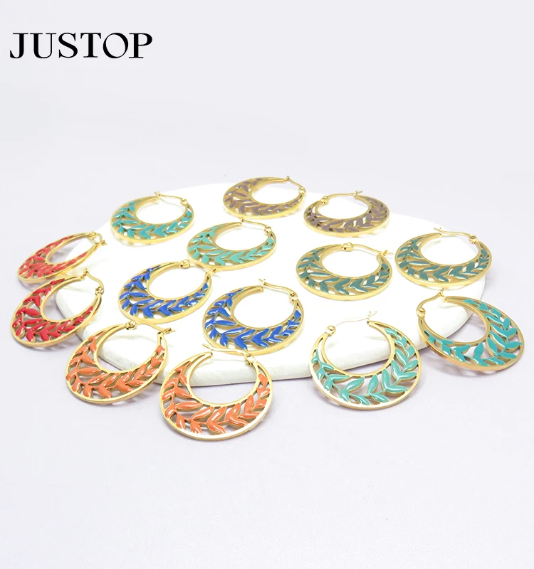 Wholesale Simple Design round Stainless Steel Hoop Earrings Trendy Fashion Jewelry in Multi-Color for Young Girls Gift