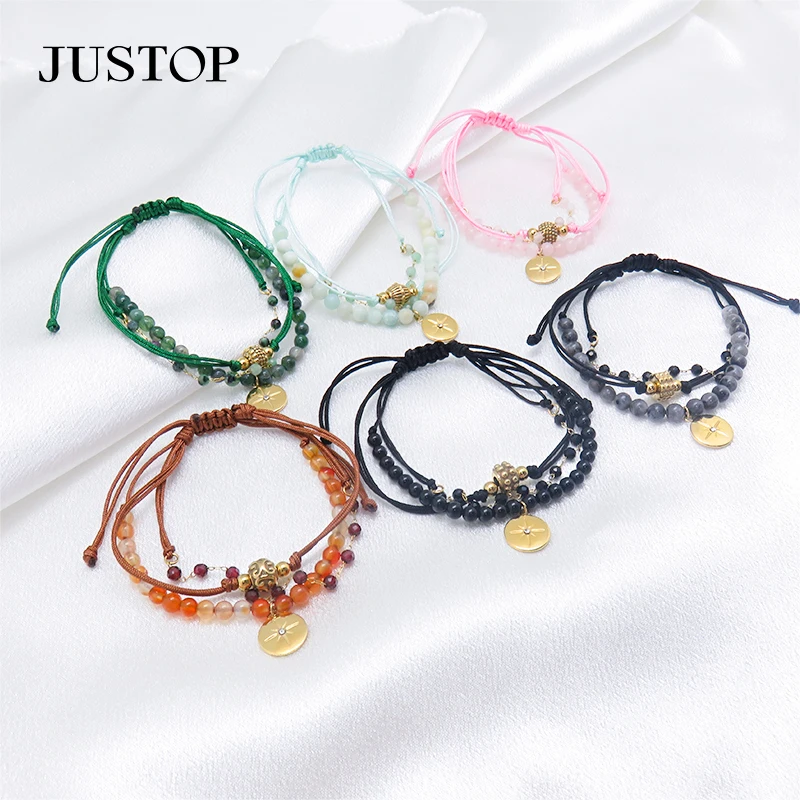 Classic Handmade Charm Woven Rope Adjustable Double Layer Stainless Steel Women Stone Beaded Bracelet Supplier
