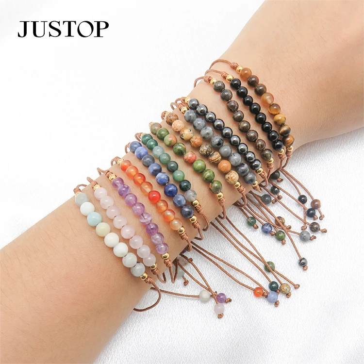 Minimalist Custom Women Adjustable Multicolor Stone Boho Beaded Real Natural Stone Charm Bracelet Supplier