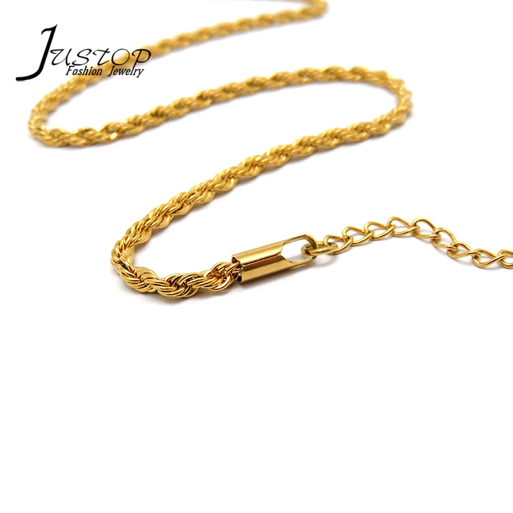 Gold Jewelry 18K Gold Plated Rope Chain Factory Custom Necklace Stainless Steel Chain for Unisex Jewelry Vendors