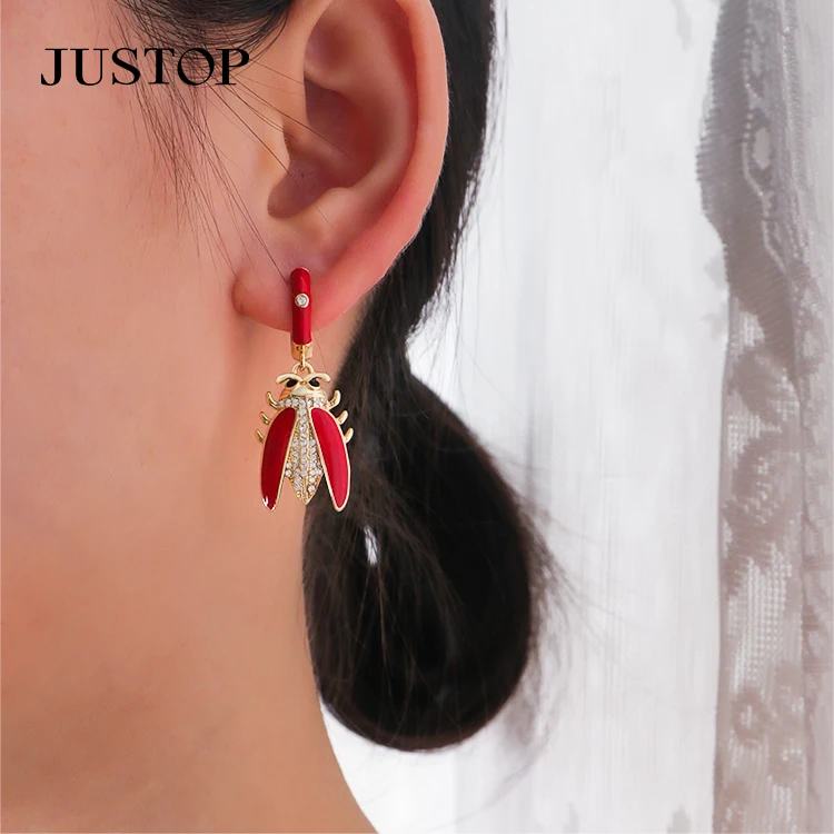 Fashion High Quality Brass Gold Plated Hollow Elegant Insect Shape Hoop Pendant Earrings for Girls