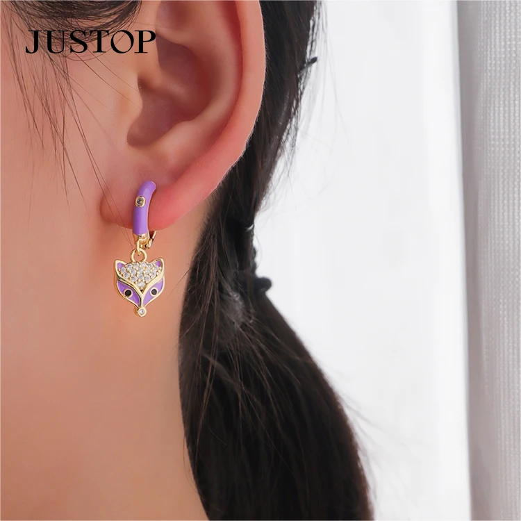 Korean Style Brass 18k Gold Plated Hand Animal Geometric Zircon Charm Brass Earring for Women Jewelry