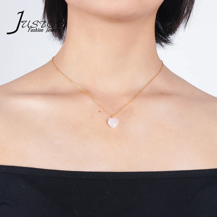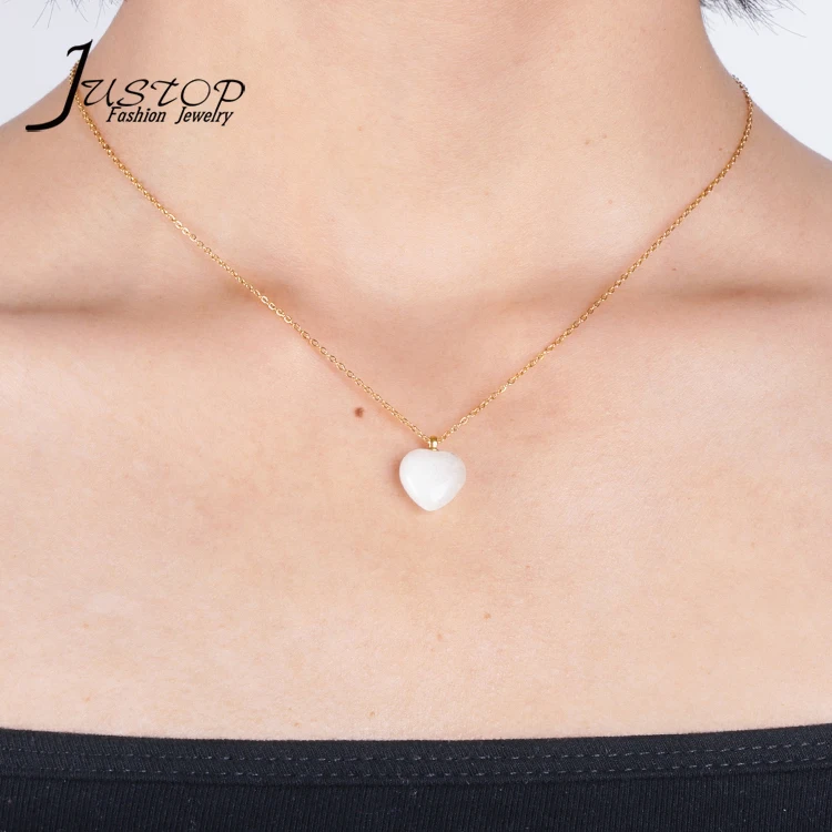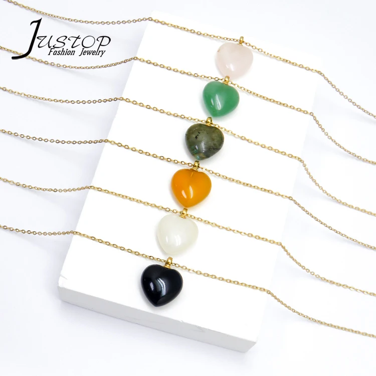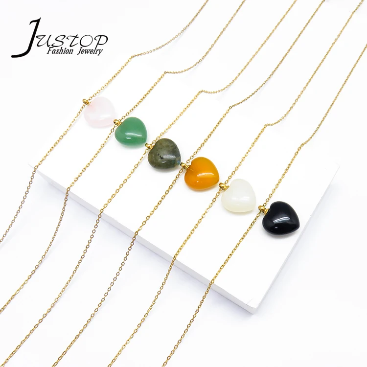 Handmade Natural Stone Agate Opal Crystal Green Aventurine Heart Pendant Necklace for Women